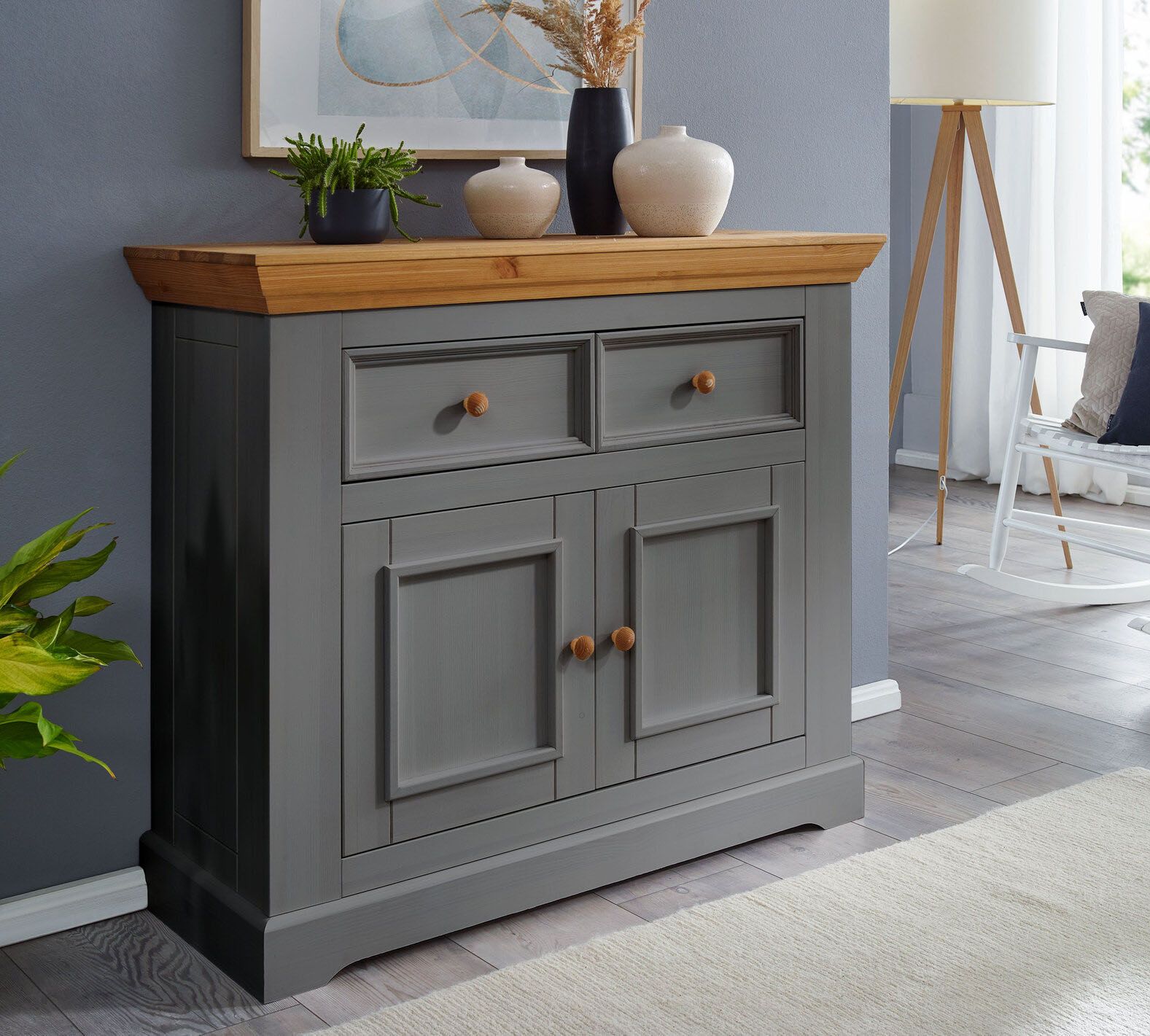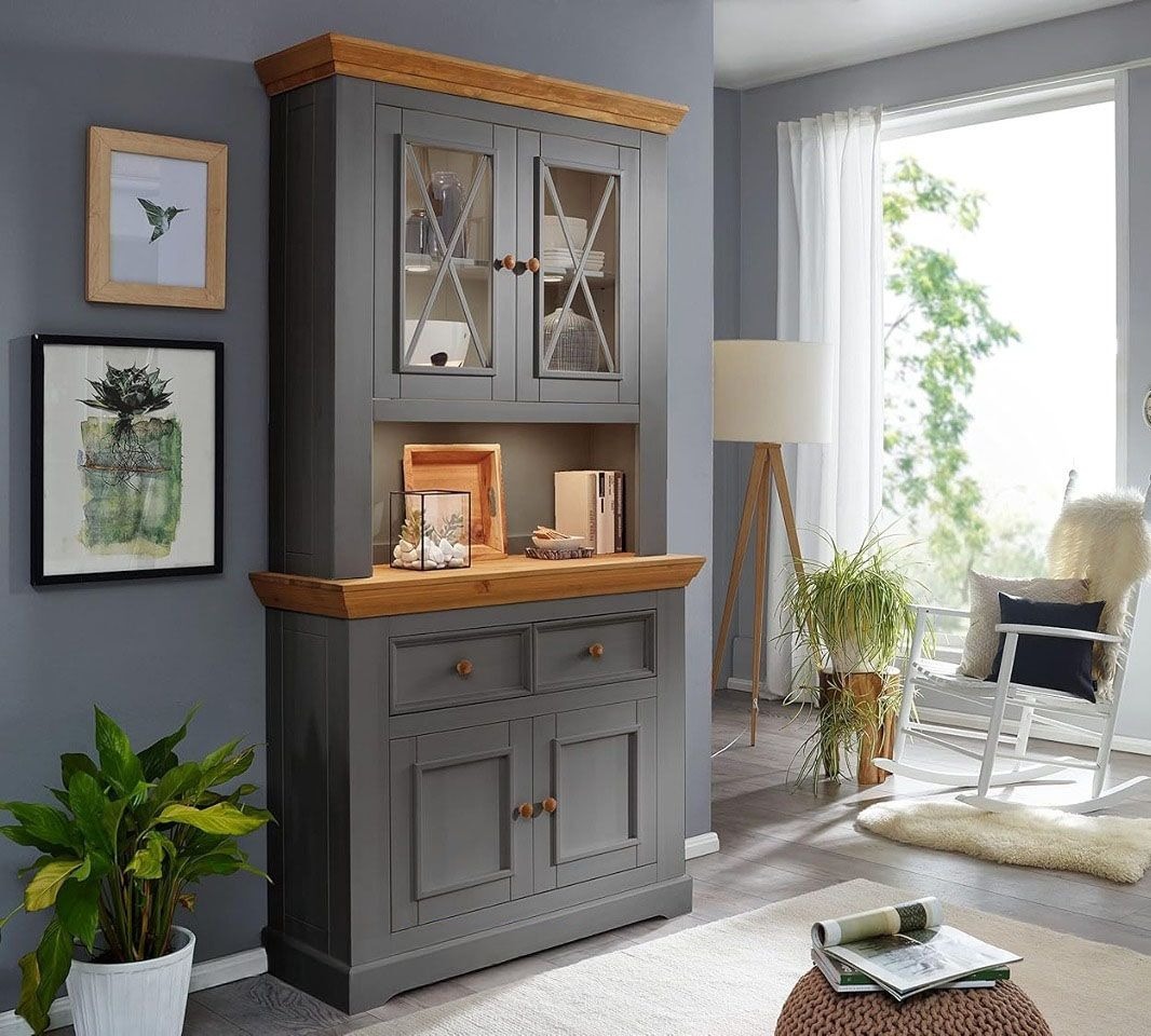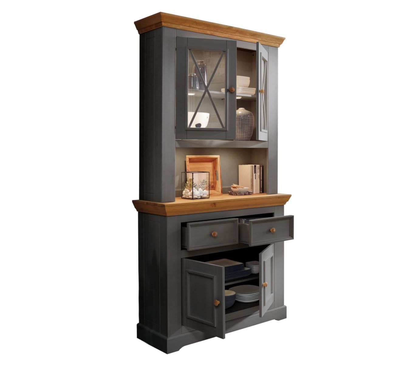 Буфет малый Форест Графит. Надстройка комода имеет две дверки и одну полку. Комод имеет два ящика на роликовых направляющих и две дверки, за дверками одно отделение с полкой.