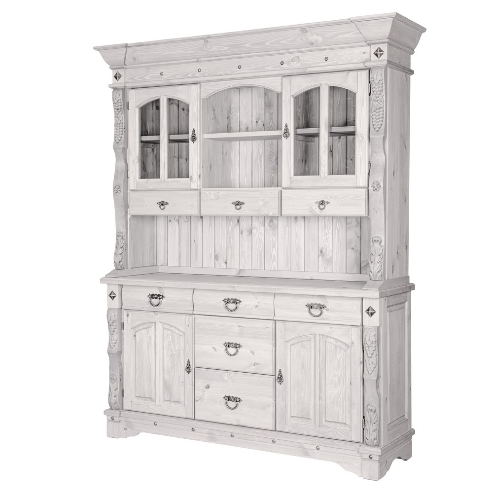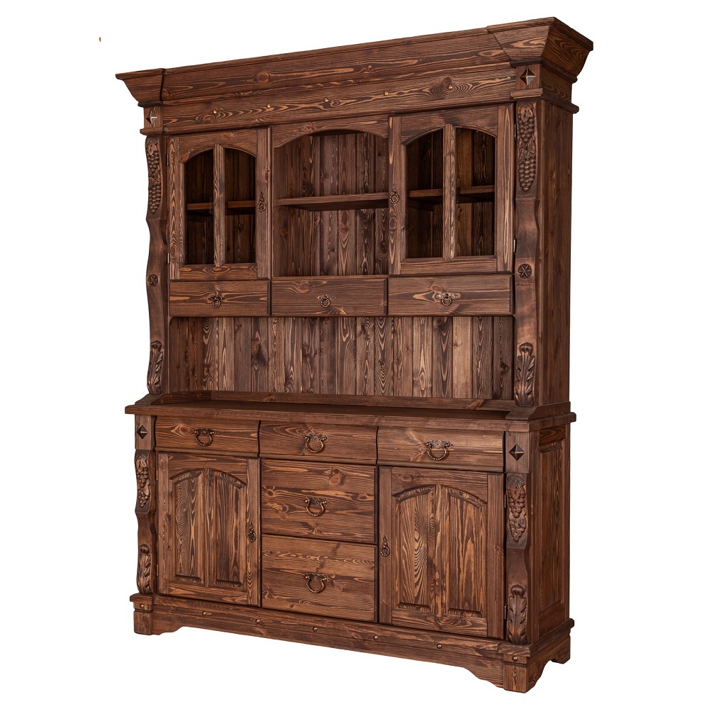 Дизайн буфета выполнен в стиле кантри и отличается превосходными резными элементами. Модель изготовлена из массива сосны, оборудована качественной фурнитурой. Поверхность обработана специальным образом, поэтому древесина имеет теплый оттенок. Модель привлекает внимание совершенством форм.