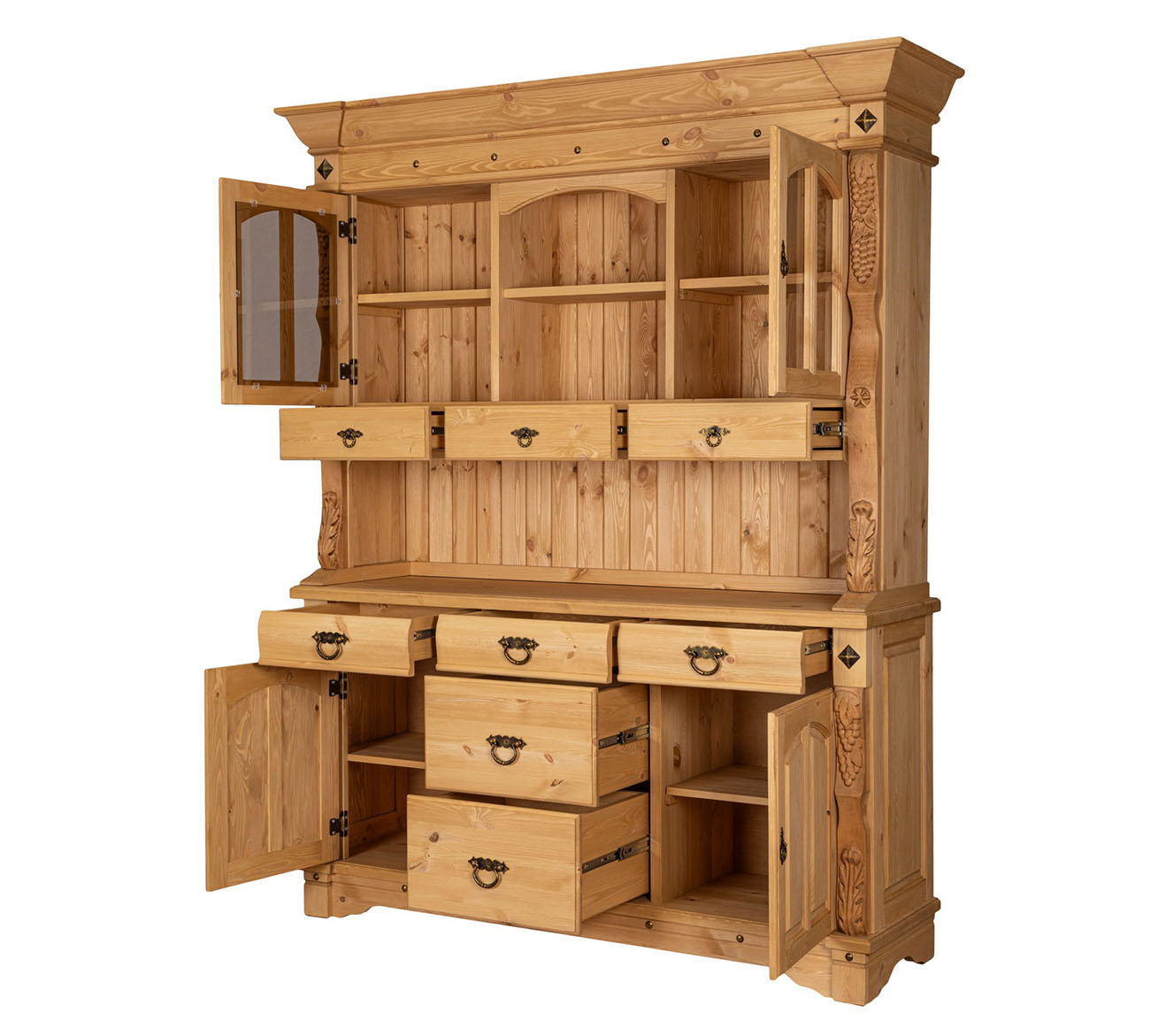 Данный буфет отличается превосходным дизайном, позволяющим использовать его в практически любом интерьере - от классики до современности. Винтажная техника заставляет любоваться изделием и каждым его элементом снова и снова, а ручная резьба делает этот буфет подлинным произведением искусства. Притом это доступное искусство, если обращать внимание на цену изделия. Ну а что касается качества, то оно здесь на высоте, иначе белорусская мебель просто не смогла бы конкурировать с ведущими западными производителями - а делает она это весьма и весьма успешно. И совсем не случайно более 50% мебели производства нашего западного соседа идёт сегодня на экспорт в Россию и страны Европы. Вы можете найти немало мест в Западной Европе, где продают белорусскую мебель, а значит она исключительного качества.