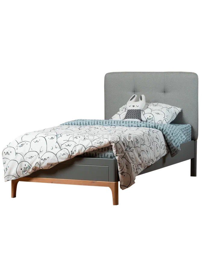 Конструкция кровати оснащена удобным механизмом, который позволяет легко поднимать нижний край основания спального места - под ним расположен просторный блок для хранения белья. Блок по площади равен спальному месту и разделен перегородками на два равных отсека. В комплект входит ортопедическое реечное основание под матрас.