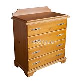 Мебель серии Грета изготавливается из массива сосны. На выбор предлагаются фасады в трех вариантах: широкая полоска, прямоугольная рамка и ёлочка. Фасады с рисунком ёлочка исполняются из МДФ. Высота ножек у некоторых предметов может быть 14 или 18 см. Ручки - по умолчанию черные металлические кнопки.