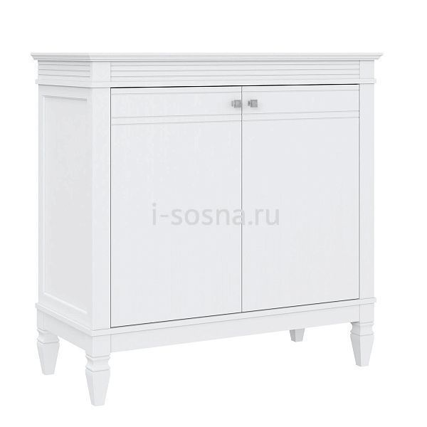 Комод оснащен двумя распашными дверками с полкой внутри. Фурнитура на дверях с доводчиками. Высокие ножки обеспечивают оптимальный доступ при уборке.