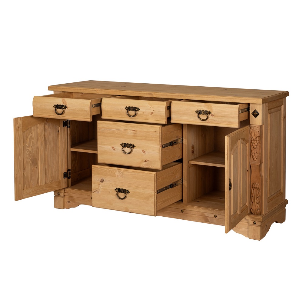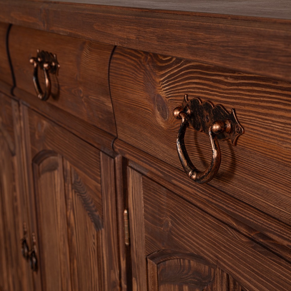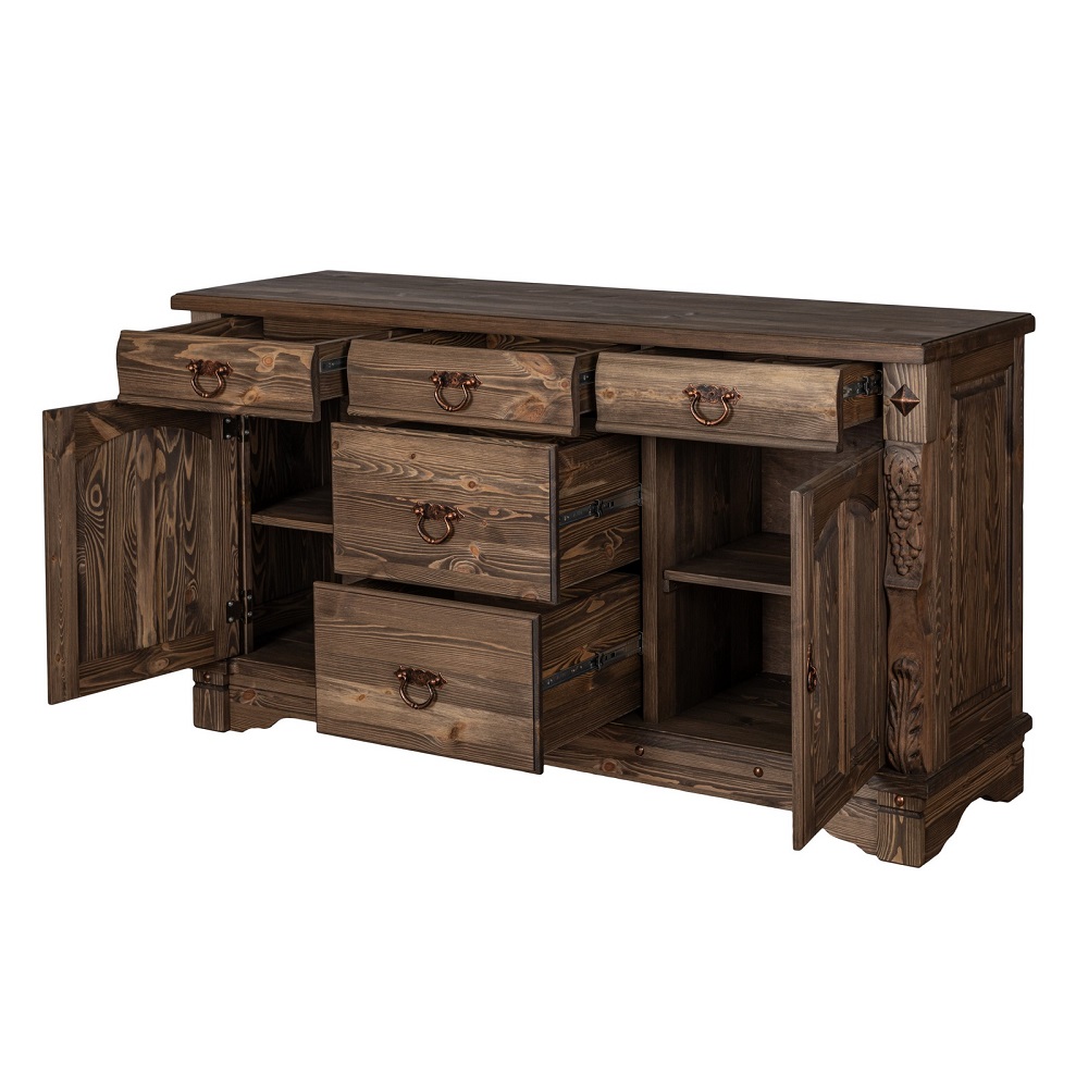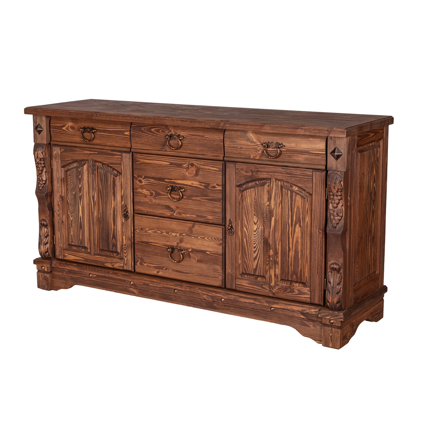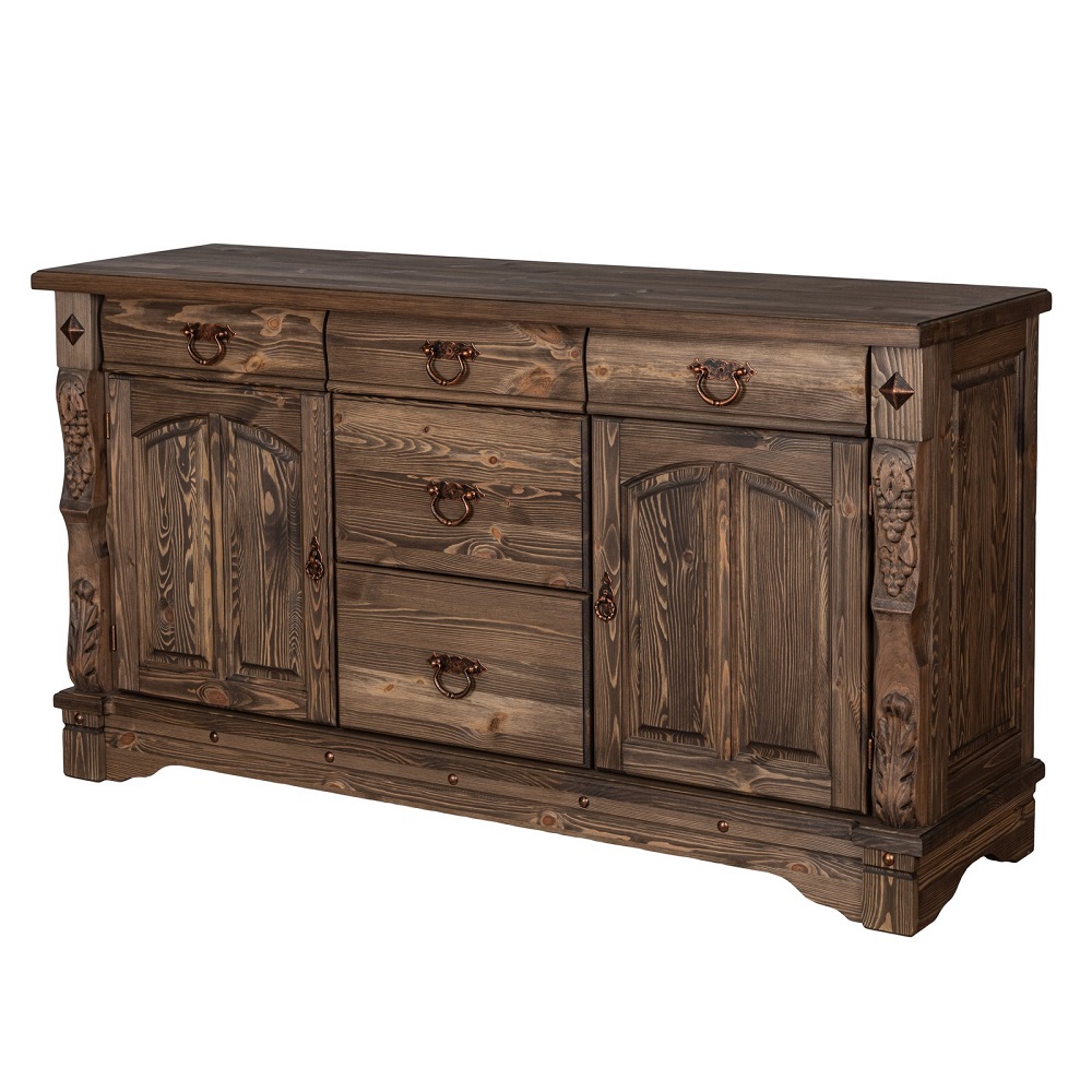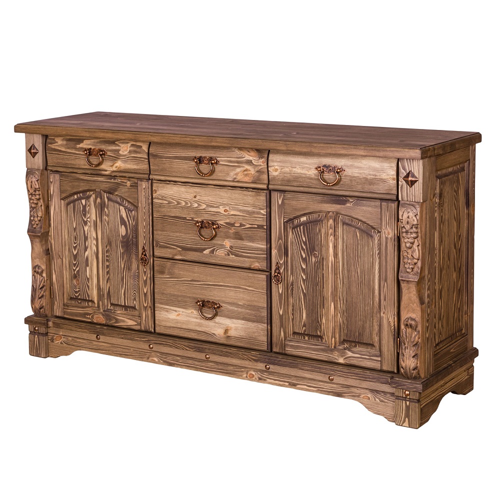 Трехстворчатый комод "Викинг gl-05/01" для столовой с резными элементами ручной работы обладает прекрасной вместительностью и функциональностью.