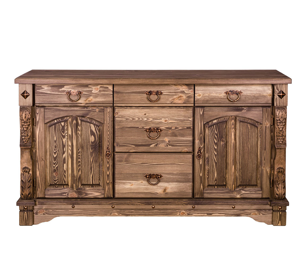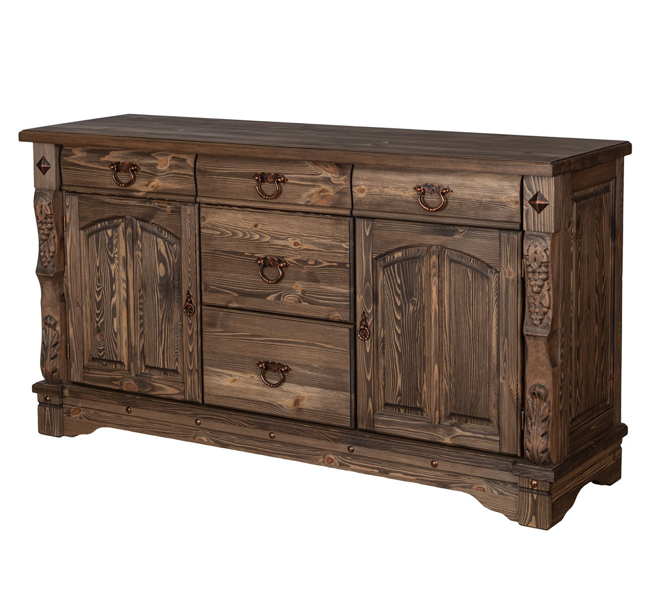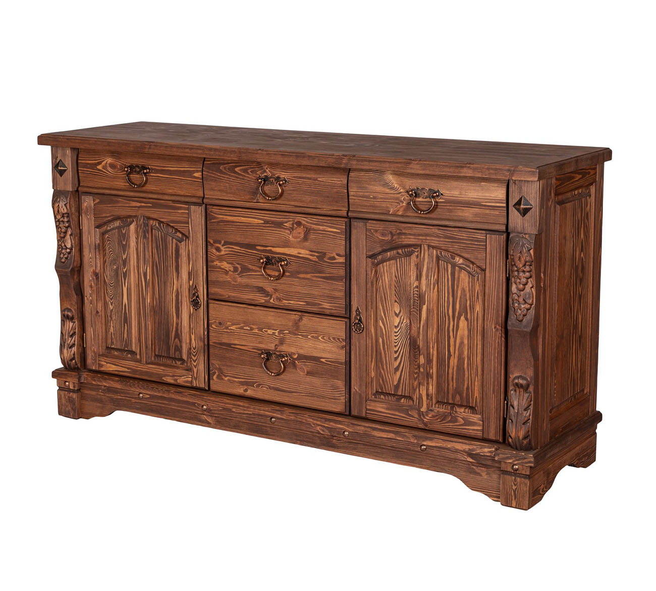 Трехстворчатый комод "Викинг gl-05/01" для столовой с резными элементами ручной работы обладает прекрасной вместительностью и функциональностью.