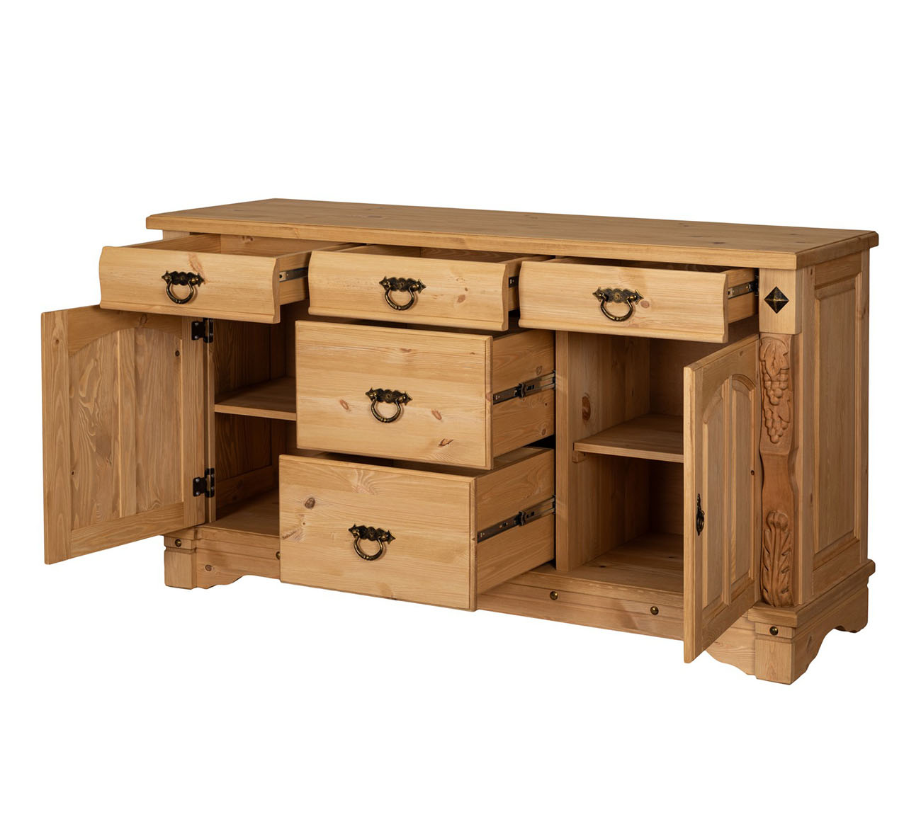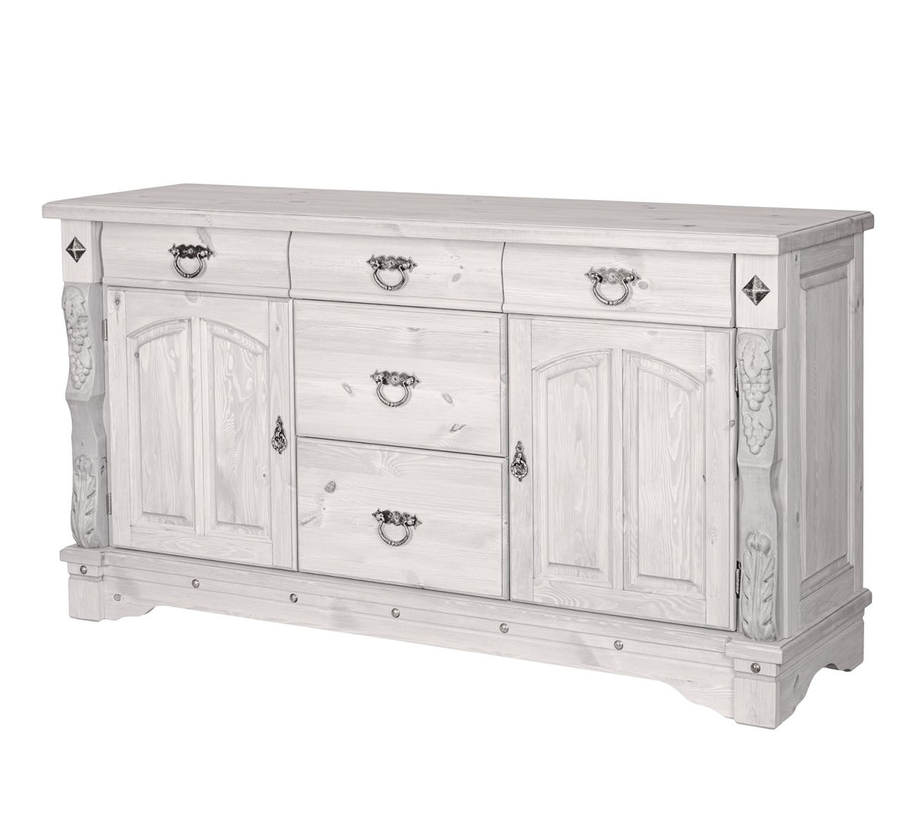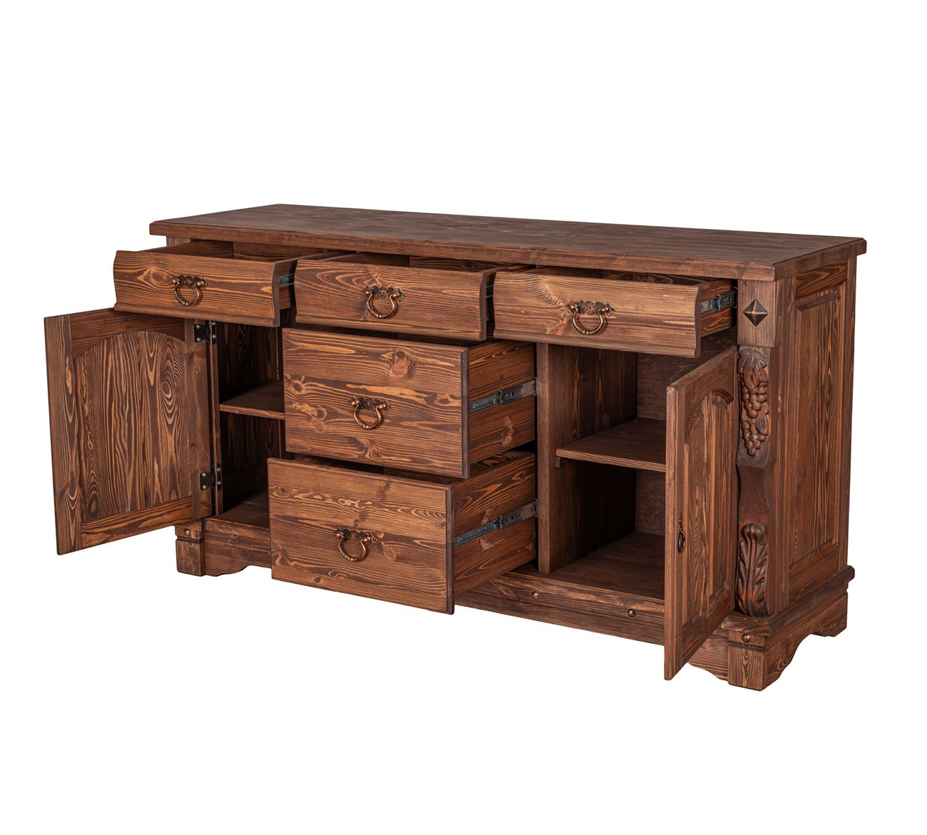 Трехстворчатый комод "Викинг gl-05/01" для столовой с резными элементами ручной работы обладает прекрасной вместительностью и функциональностью.