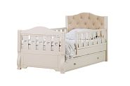 Конструкция кровати оснащена удобным механизмом, который позволяет легко поднимать нижний край основания спального места - под ним расположен просторный блок для хранения белья. Блок по площади равен спальному месту и разделен перегородками на два равных отсека. В комплект входит ортопедическое реечное основание под матрас.