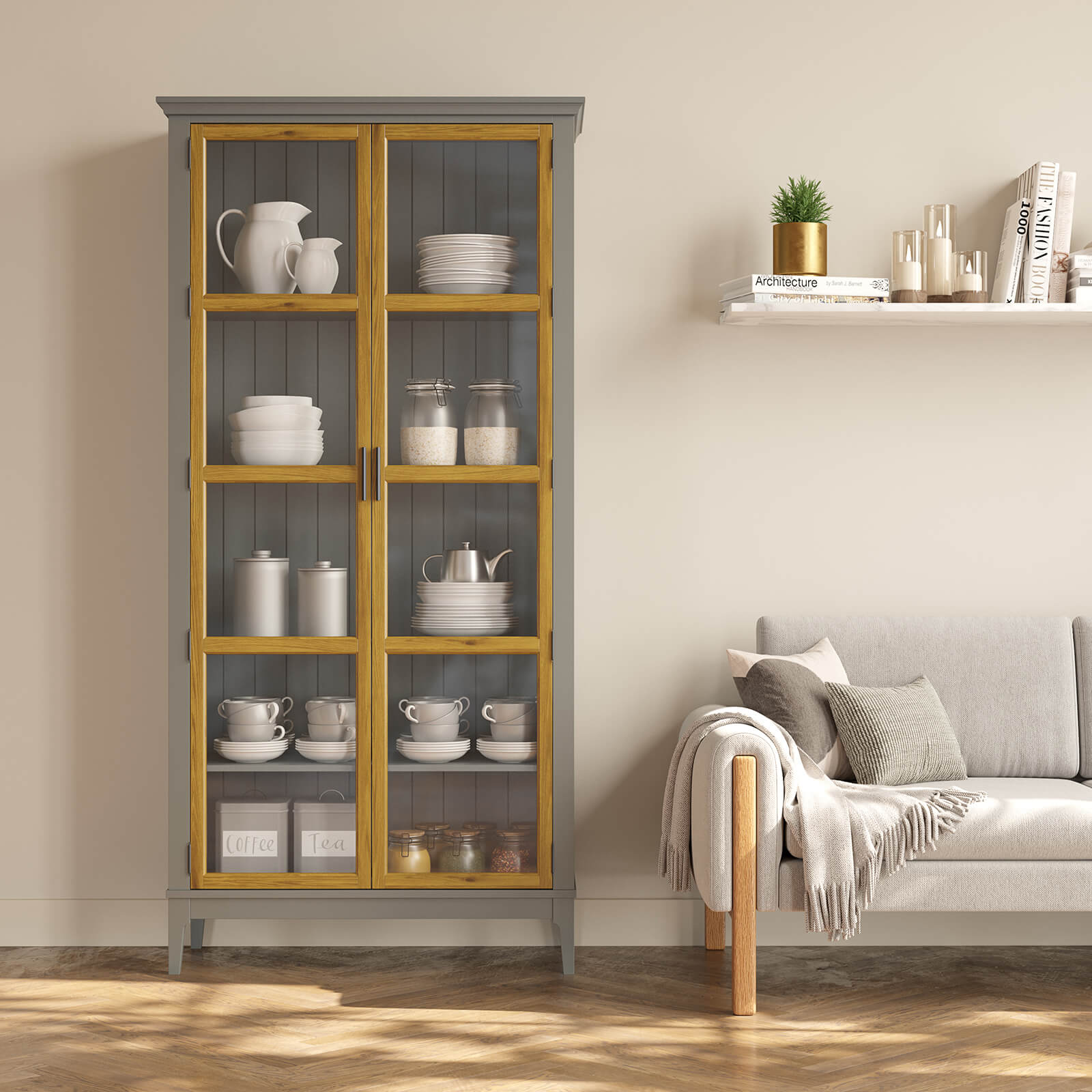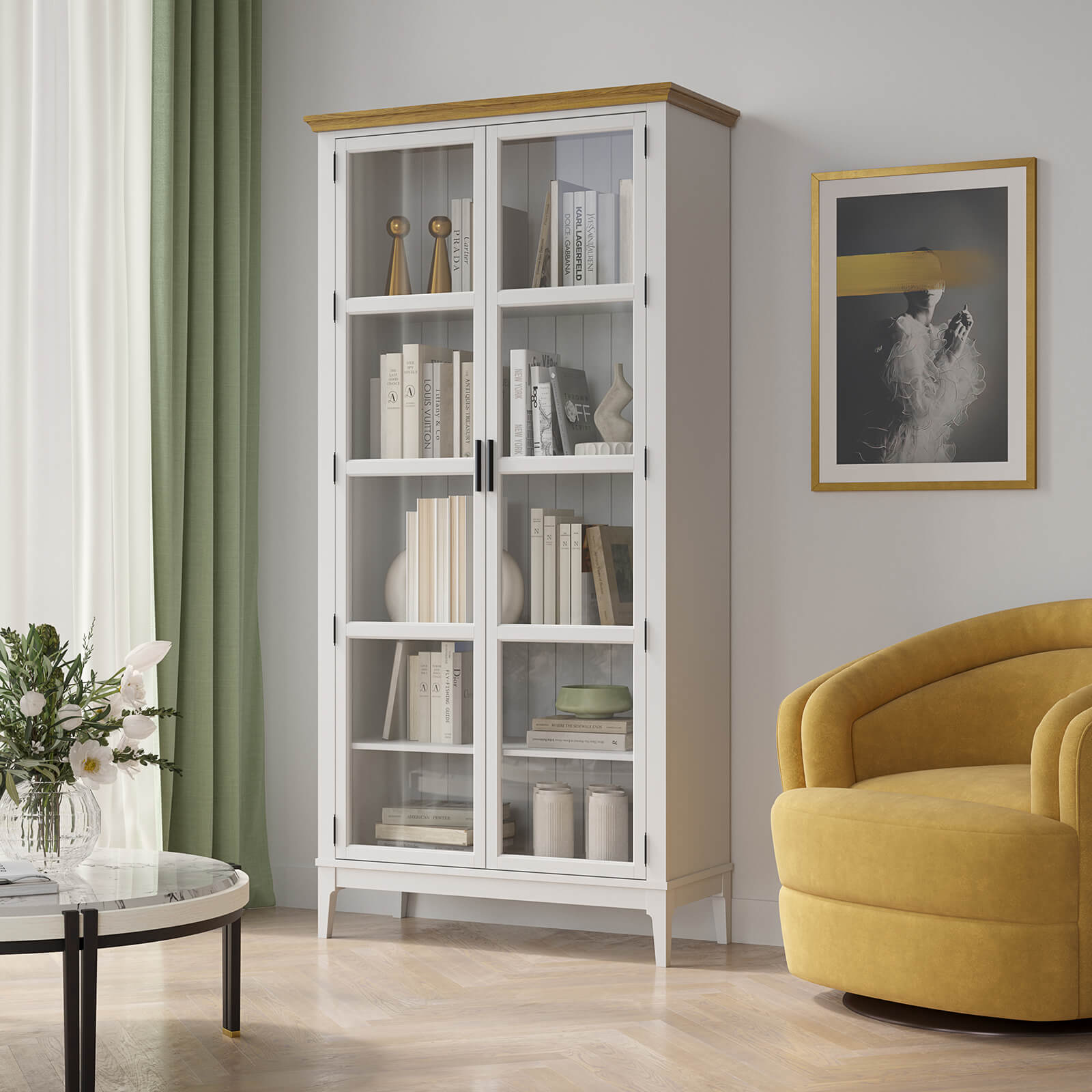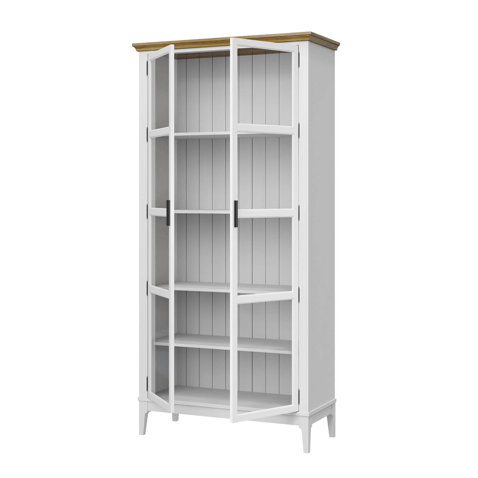 Шкаф для книг «Квадро-С» 220 из массива сосны. Представляет собой высокий шкаф с распашными, стеклянными дверями и четырьмя полками.