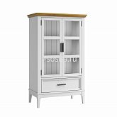 Высокий шкаф для посуды «Квадро-С» 21 из массива сосны  с распашными, стеклянными дверями, за которыми располагаются 2 съемные полки. Внизу один выдвижной ящик.