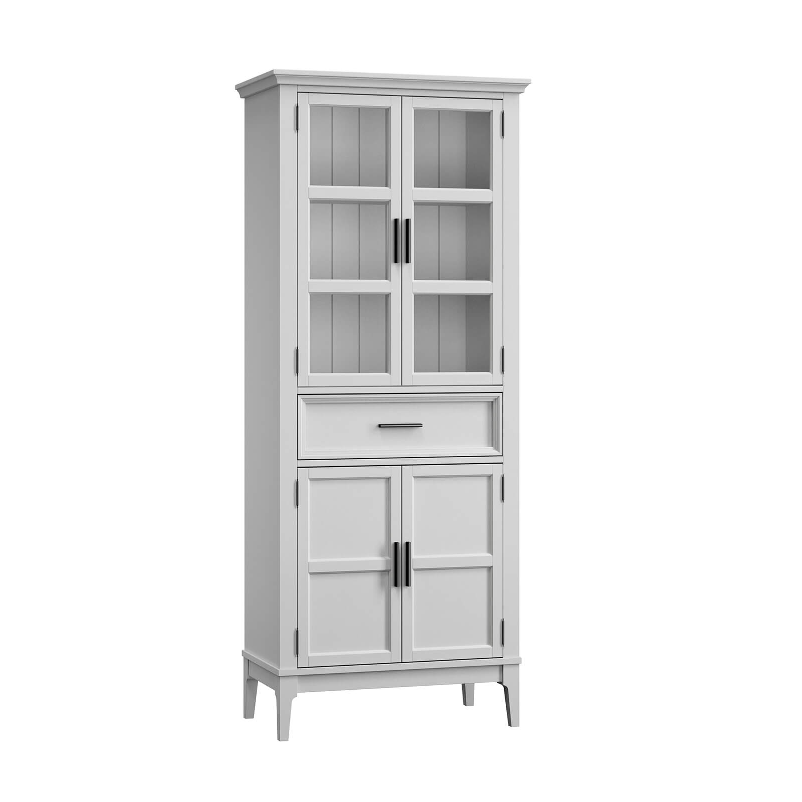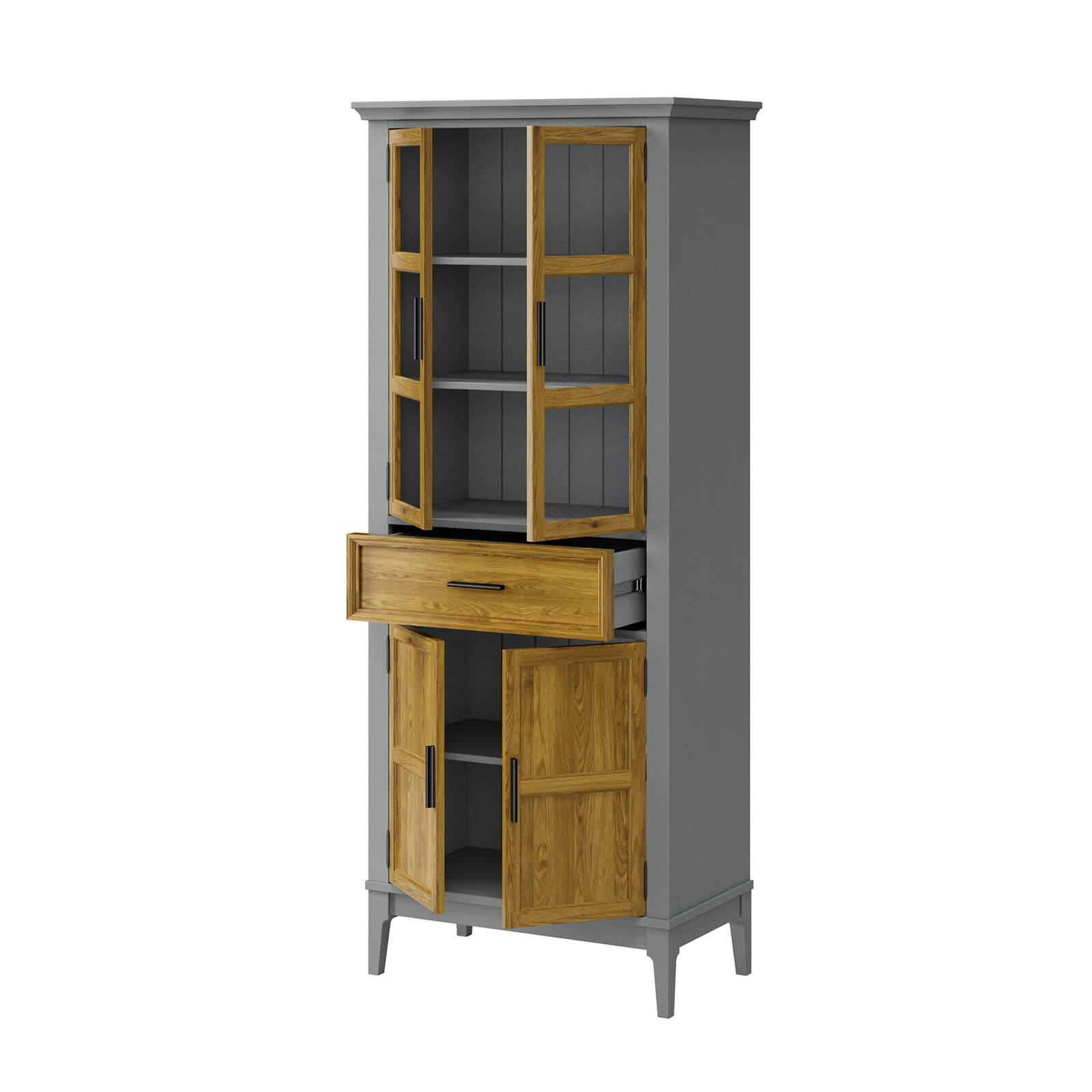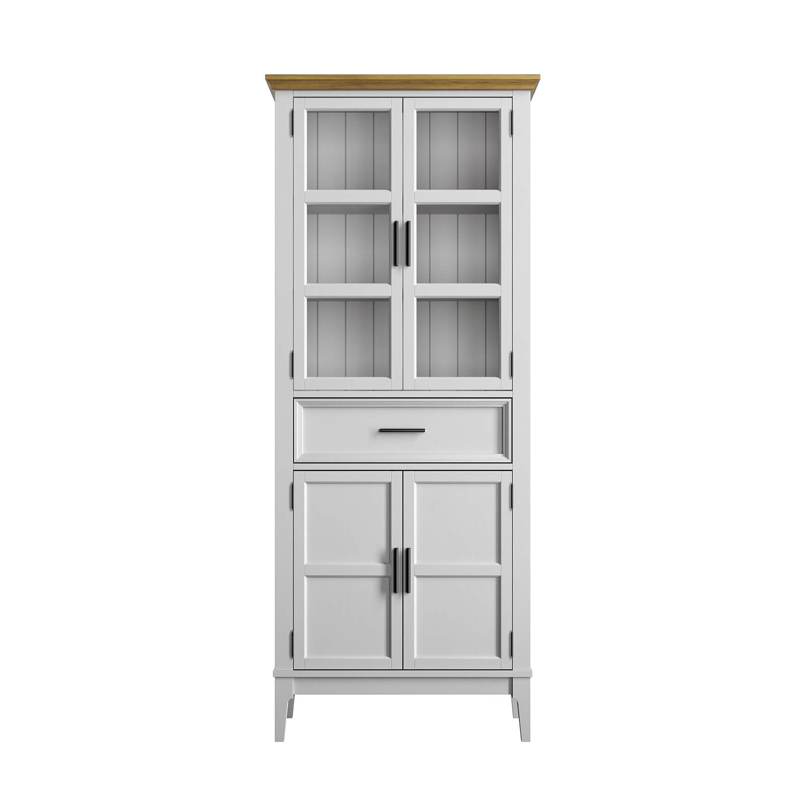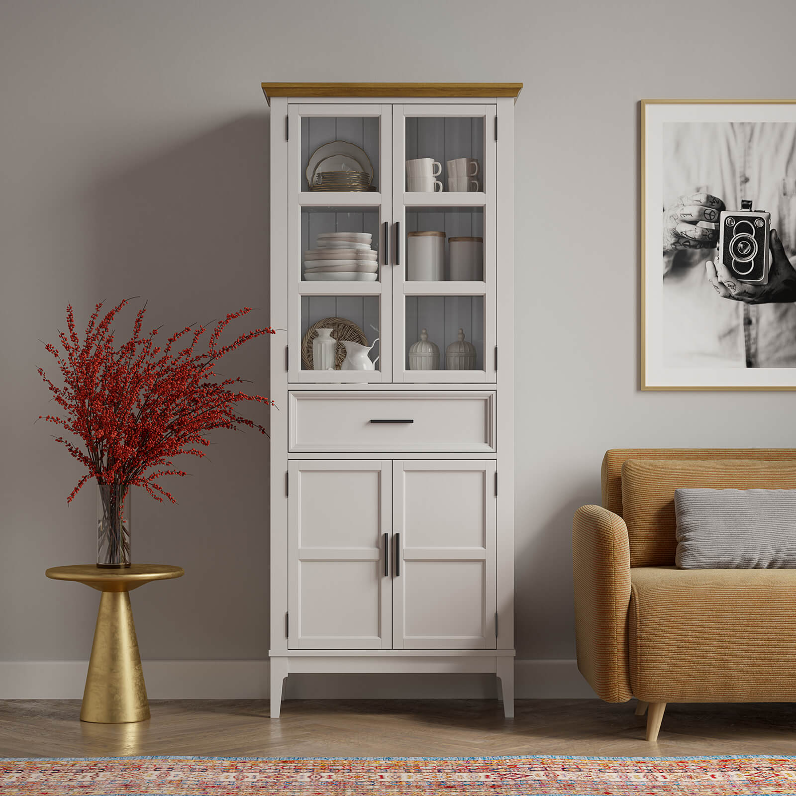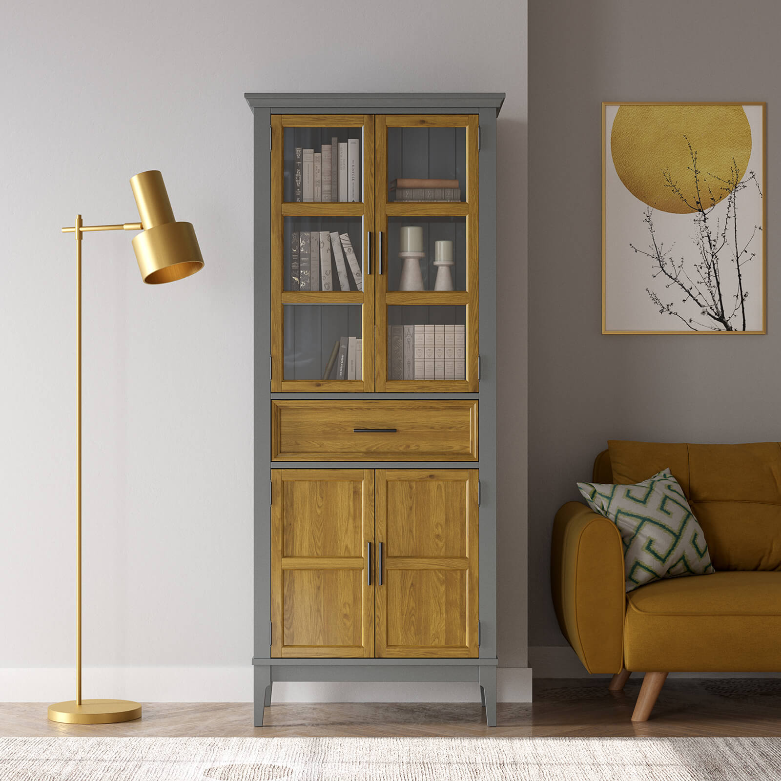 Шкаф для посуды «Квадро-С» 221-185 из массива сосны  с распашными, стеклянными дверями и филенчатыми дверями. В середине один выдвижной ящик.