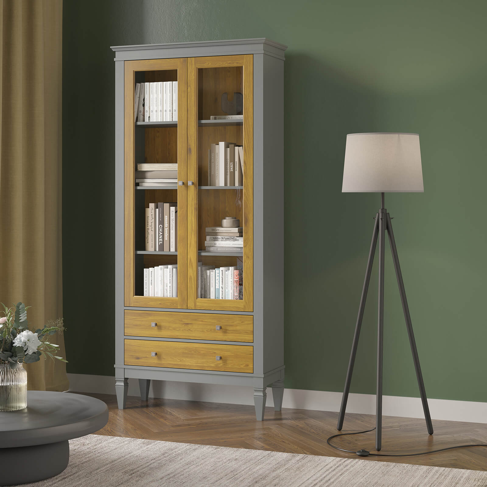Этот шкаф «Ольса-С» 202 - отличный вариант для хранения любимых книг. Здесь они будут в полном порядке и всегда под рукой. Оснащен тремя широкими и  вместительными полками за стеклянными дверями и двумя широкими ящиками. Устойчиво держится на высоких ножках. Хороший вариант для гостиной, детской комнаты или кабинета. Может использоваться самостоятельно или в сочетании с другими предметами из этой коллекции.