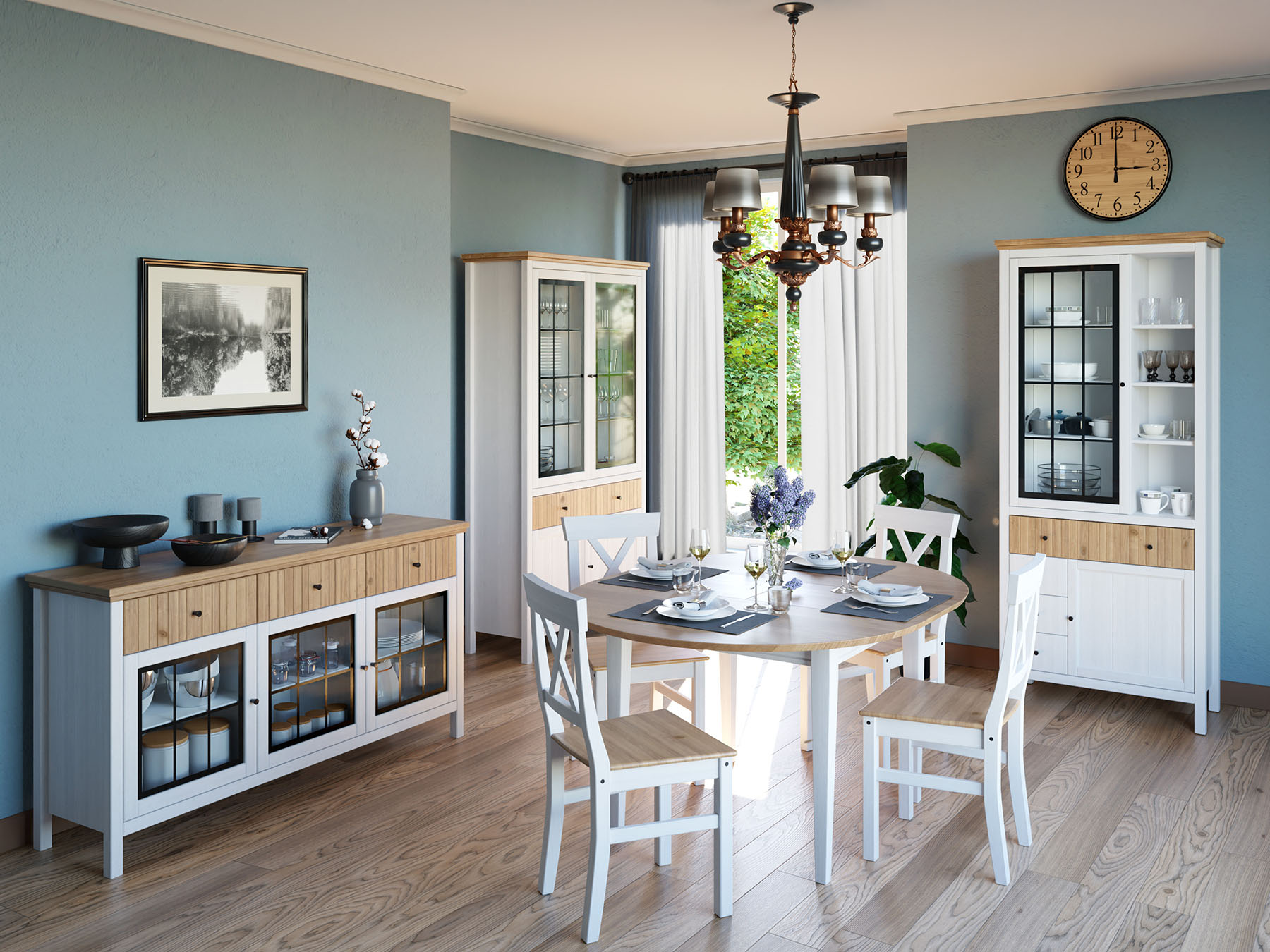 Шкаф для посуды Сканди стеклянная и глухая двери 1113СТЧ, ММЦ