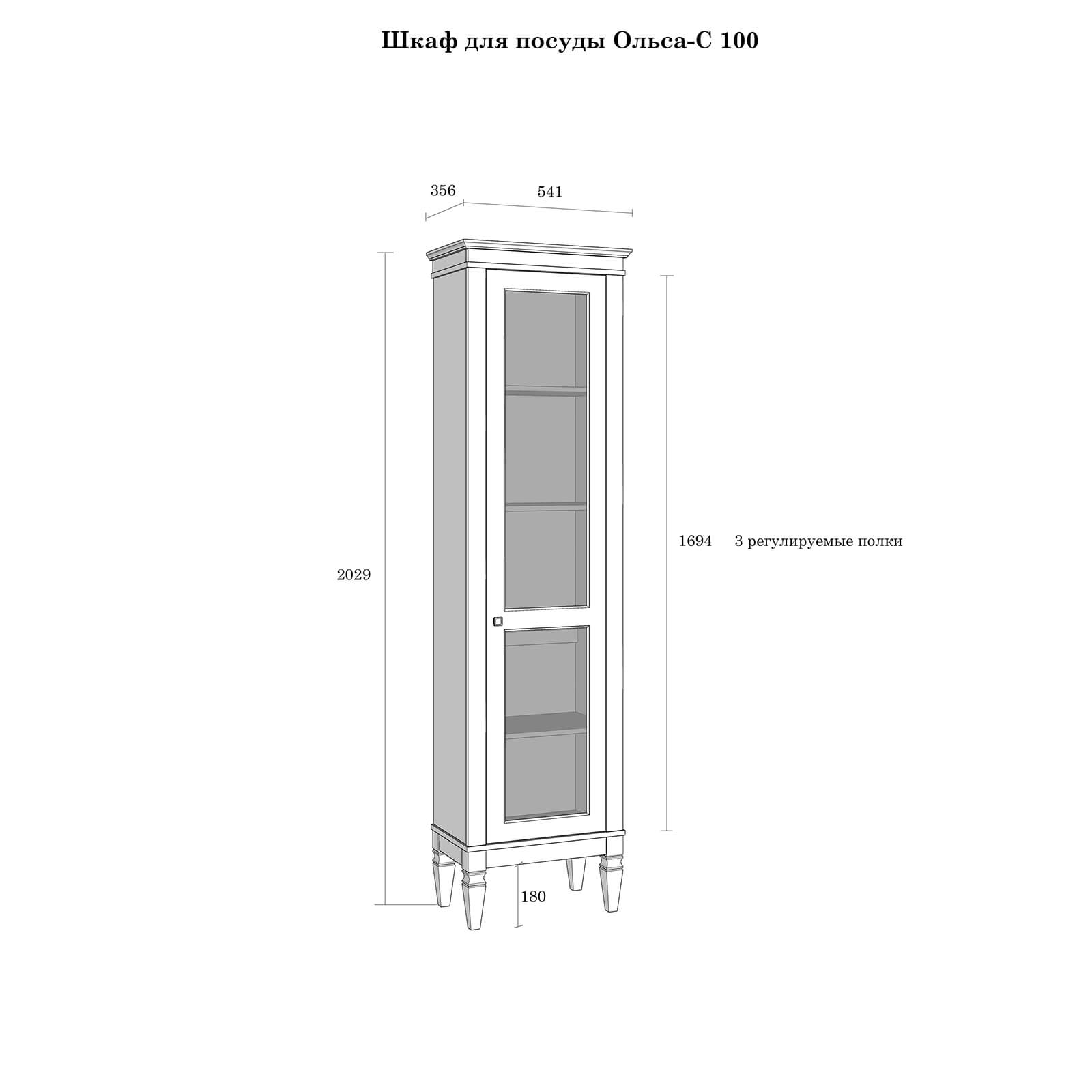 Шкаф для посуды “Ольса-С” 100 - отличный вариант для хранения любимых книг. Здесь они будут в полном порядке и всегда под рукой. Оснащен пятью вместительными полками за стеклянной дверью. Устойчиво держится на высоких ножках. Хороший вариант для гостиной, детской комнаты или кабинета. Может использоваться самостоятельно или в сочетании с другими предметами из этой коллекции.
