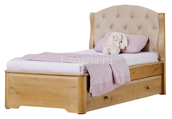 Конструкция кровати оснащена удобным механизмом, который позволяет легко поднимать нижний край основания спального места - под ним расположен просторный блок для хранения белья. Блок по площади равен спальному месту и разделен перегородками на два равных отсека. В комплект входит ортопедическое реечное основание под матрас.