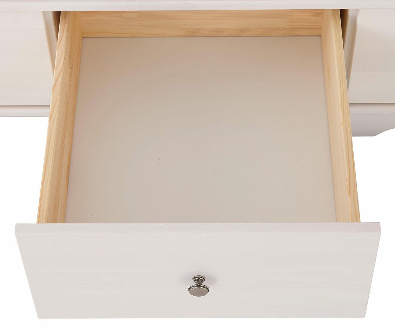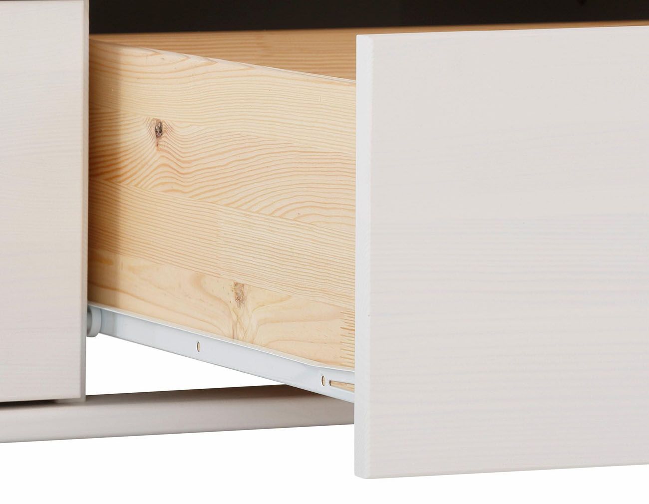 Шкаф Бейли имеет 3 отделения: правое и левое отделения с полкой и штангой под ней, среднее широкое отделение имеет 3 полки, которые регулируются по высоте. Под каждой дверью имеется выдвижной ящик. Шторы в комплект не входят и приобретаются отдельно.