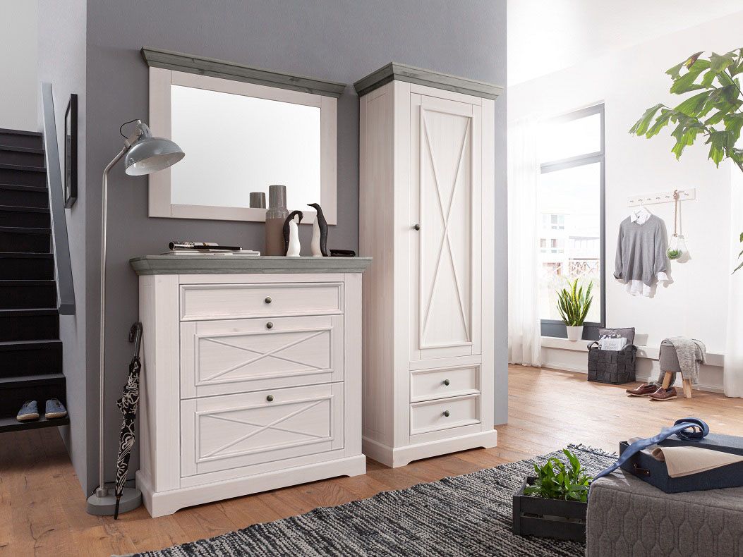 Наполнение шкафа: полка и штанга для одежды в верхней части и два выдвижных ящика на роликовых направляющих в нижней части. Дверь навешивается на любую сторону.