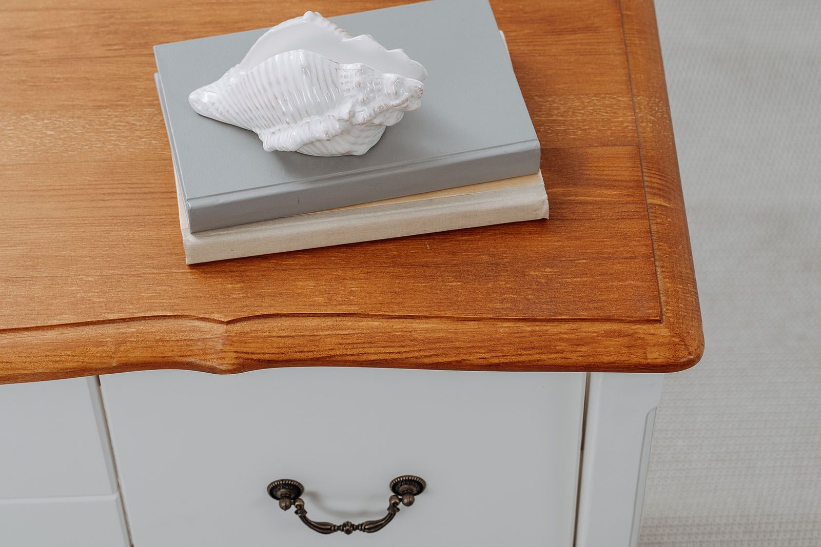 Мебель покрыта прозрачным лаком, при котором сохраняется структура дерева. Со временем мебель меняет цвет от светло-желтого до янтарного оттенка.