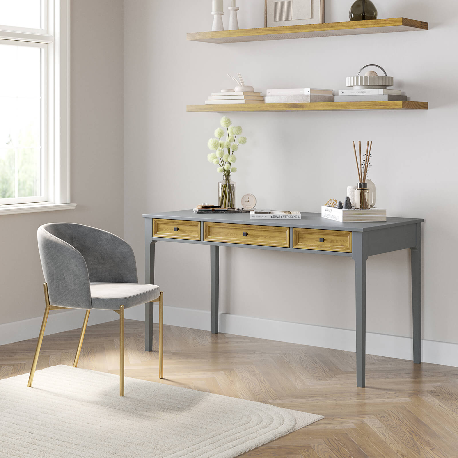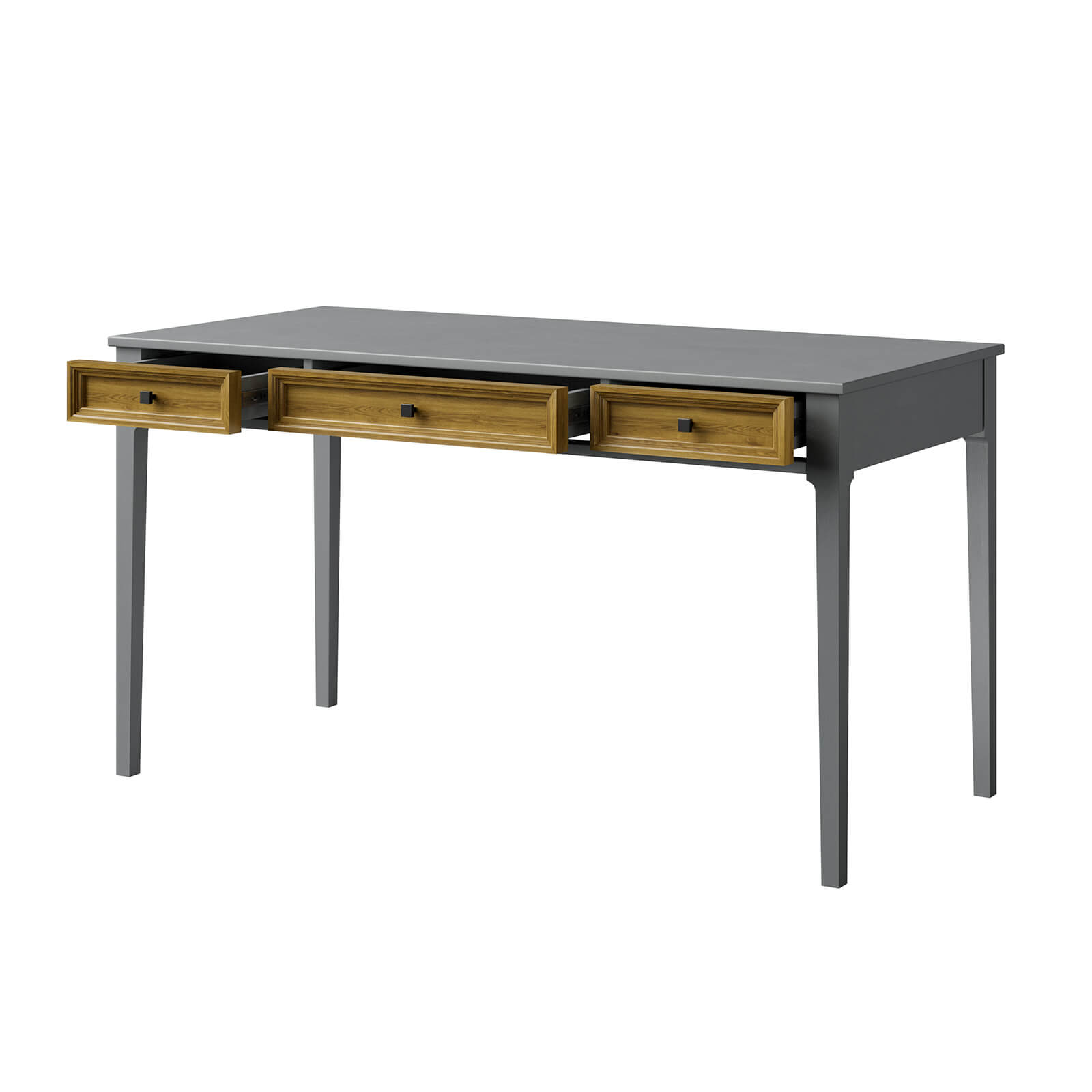 Классический стол из коллекции «Квадро-С». Широкая удобная столешница подойдет для работы за компьютером. Под ней расположено три выдвижных ящика для канцтоваров, документов и разных мелочей. Все детали сделаны из натурального массива дерева, что обеспечивает их прочность и надежность. Отличное приобретение для личного кабинета, гостиной или детской. Широкая столешница удобна как для работы за компьютером, так и для рисования и другого ручного труда.