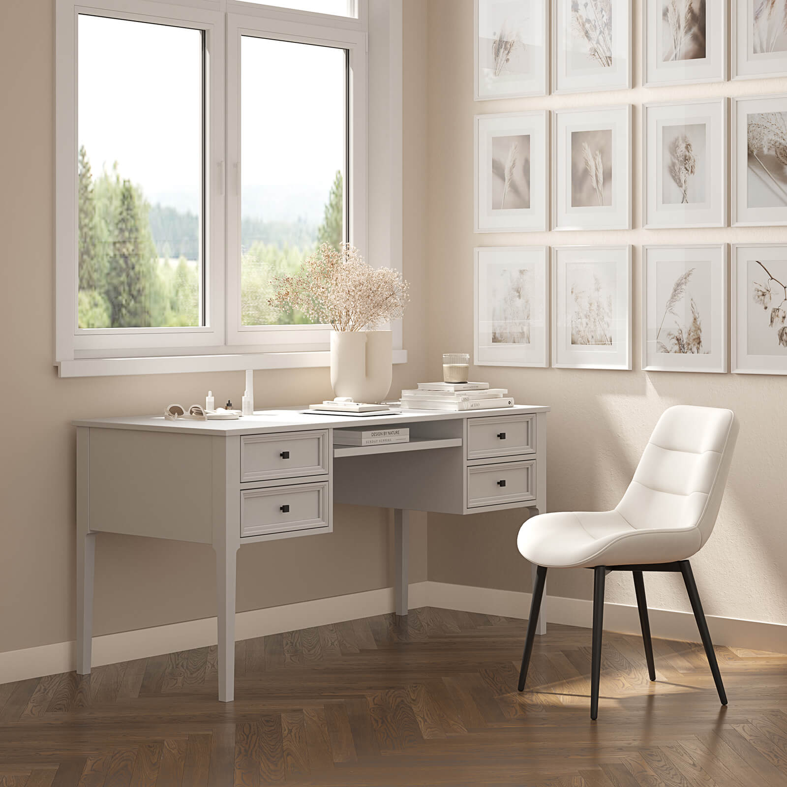 Классический стол из коллекции «Квадро-С». Широкая удобная столешница подойдет для работы за компьютером. Под ней расположено четыре выдвижных ящика и выдвижная полка для канцтоваров, документов и разных мелочей. Все детали сделаны из натурального массива дерева, что обеспечивает их прочность и надежность. Отличное приобретение для личного кабинета, гостиной или детской. Широкая столешница удобна как для рисования и другого ручного труда.