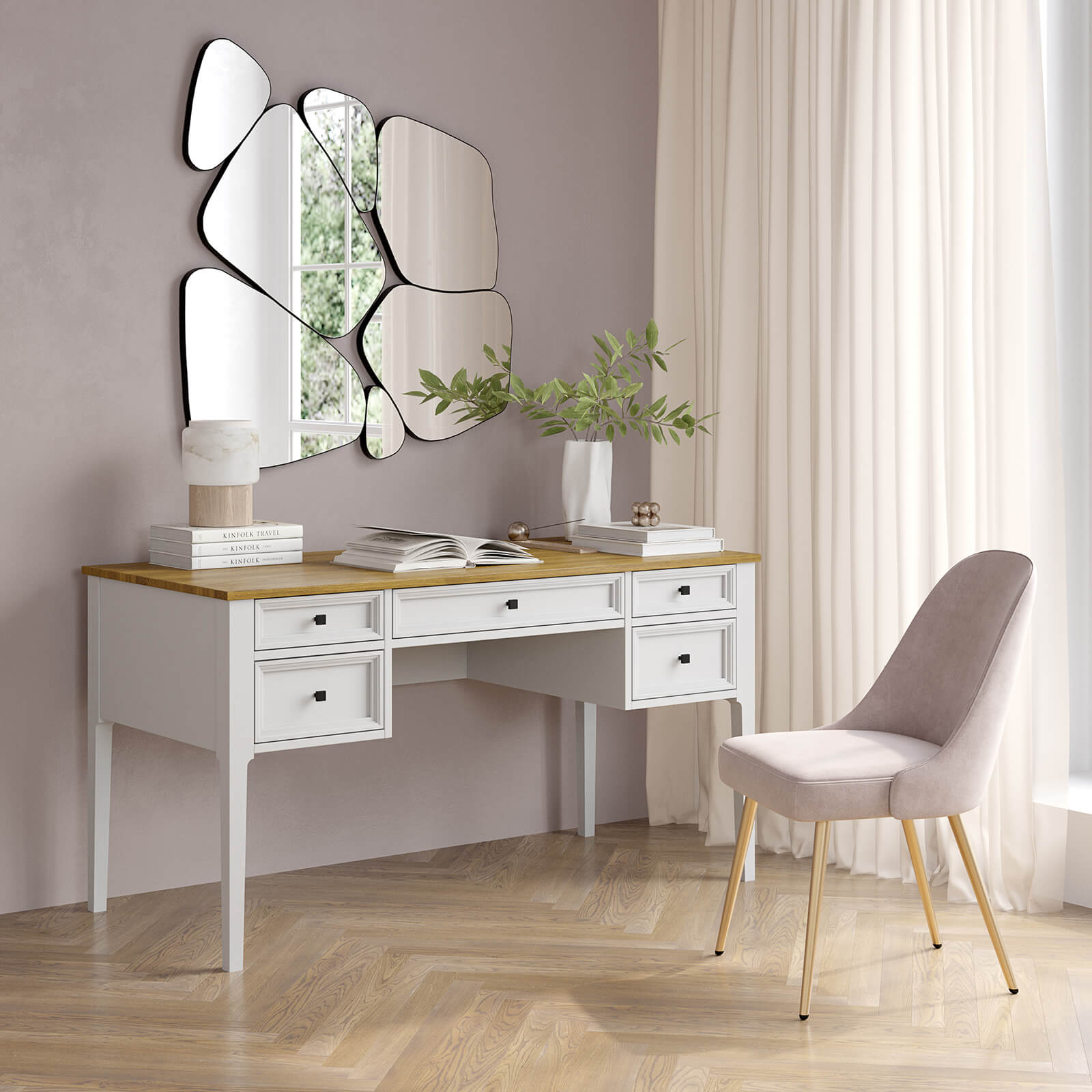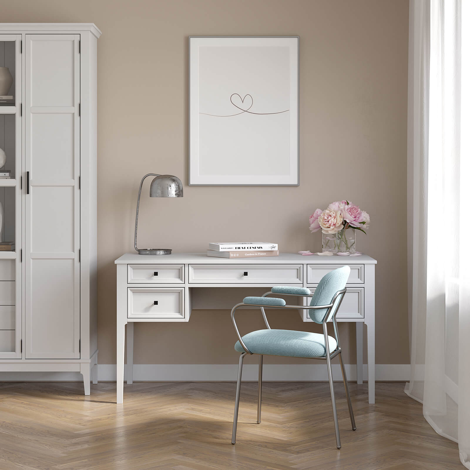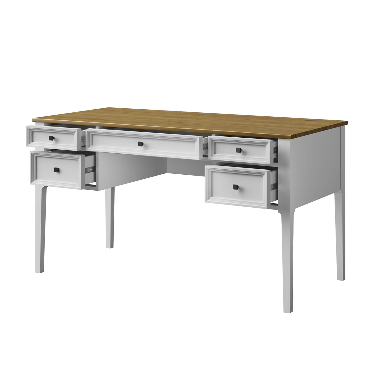 Классический стол из коллекции «Квадро-С». Широкая удобная столешница подойдет для работы за компьютером. Под ней расположено пять выдвижных ящиков для канцтоваров, документов и разных мелочей. Все детали сделаны из натурального массива дерева, что обеспечивает их прочность и надежность. Отличное приобретение для личного кабинета, гостиной или детской. Широкая столешница удобна как для работы за компьютером, так и для рисования и другого ручного труда.