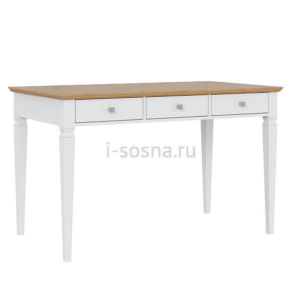 Классический  стол из коллекции “Ольса” для поклонников светлых интерьеров. Широкая удобная столешница подойдет для работы за компьютером. Под ней расположено три выдвижных ящика для канцтоваров, документов и разных мелочей. Все детали сделаны из натурального массива дерева, что обеспечивает их прочность и надежность. Отличное приобретение для личного кабинета, гостиной или спальни. Широкая столешница удобна как для работы за компьютером, так и для рисования и другого ручного труда.
