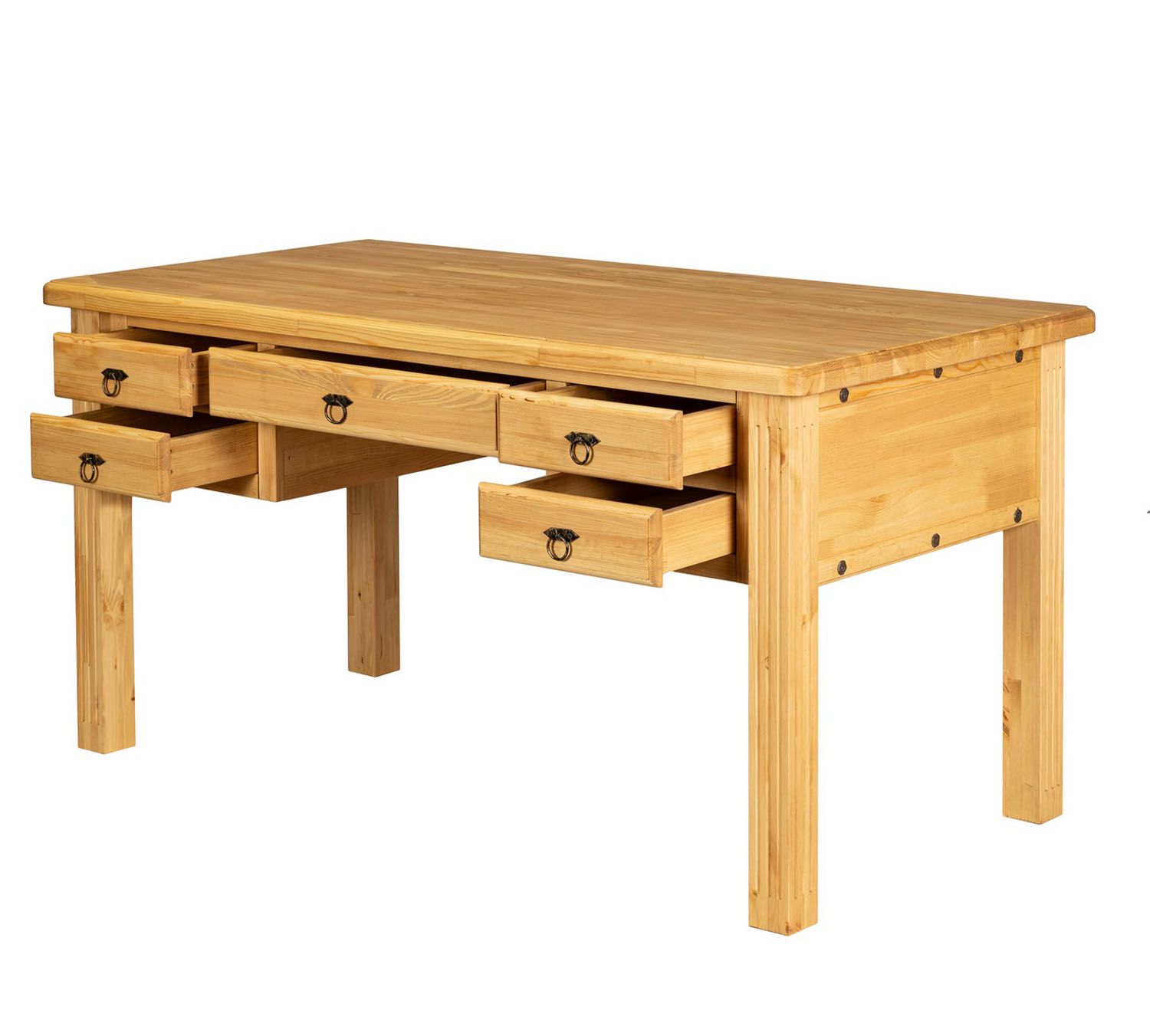 Письменный стол "Викинг" - удобное и практичное решение для кабинета в загородном доме или для гостиной в квартире. Широкая столешница позволит вам расположить все бумаги и документы в нужном вам порядке, а 5 выдвижных ящиков помогут хранить в порядке канцелярские принадлежности и другие мелочи.