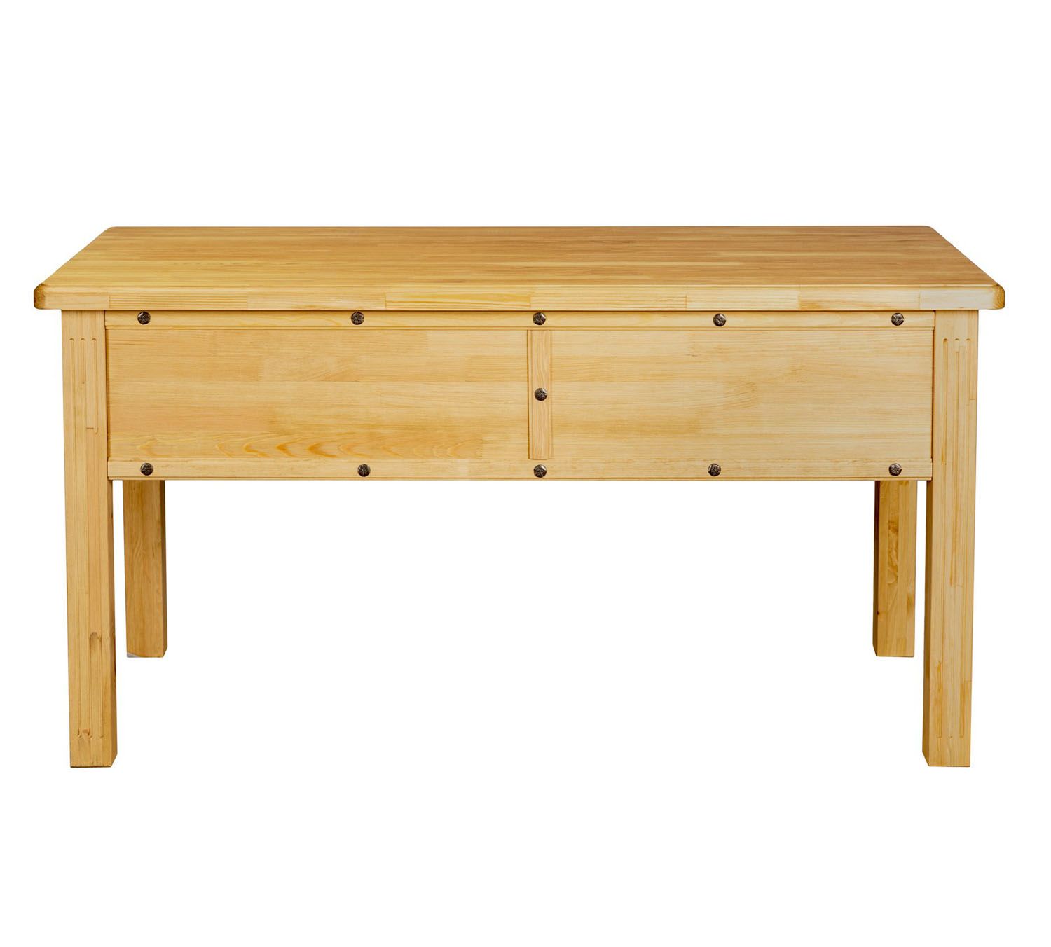 Стол изготовлен из массива сосны, экологичного и надежного природного материала, покрыта пчелиным воском и дополнена качественной фурнитурой.