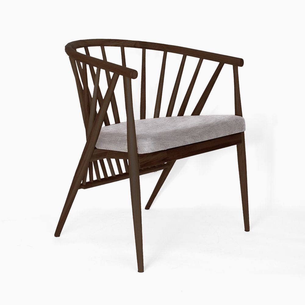 Оригинальный стул с подлокотниками из массива дуба. Стул может быть изготовлен в нескольких цветах на выбор. Мягкая подушка на сидение стула может быть выполнена из ткани, эко-кожи или натуральной кожи..