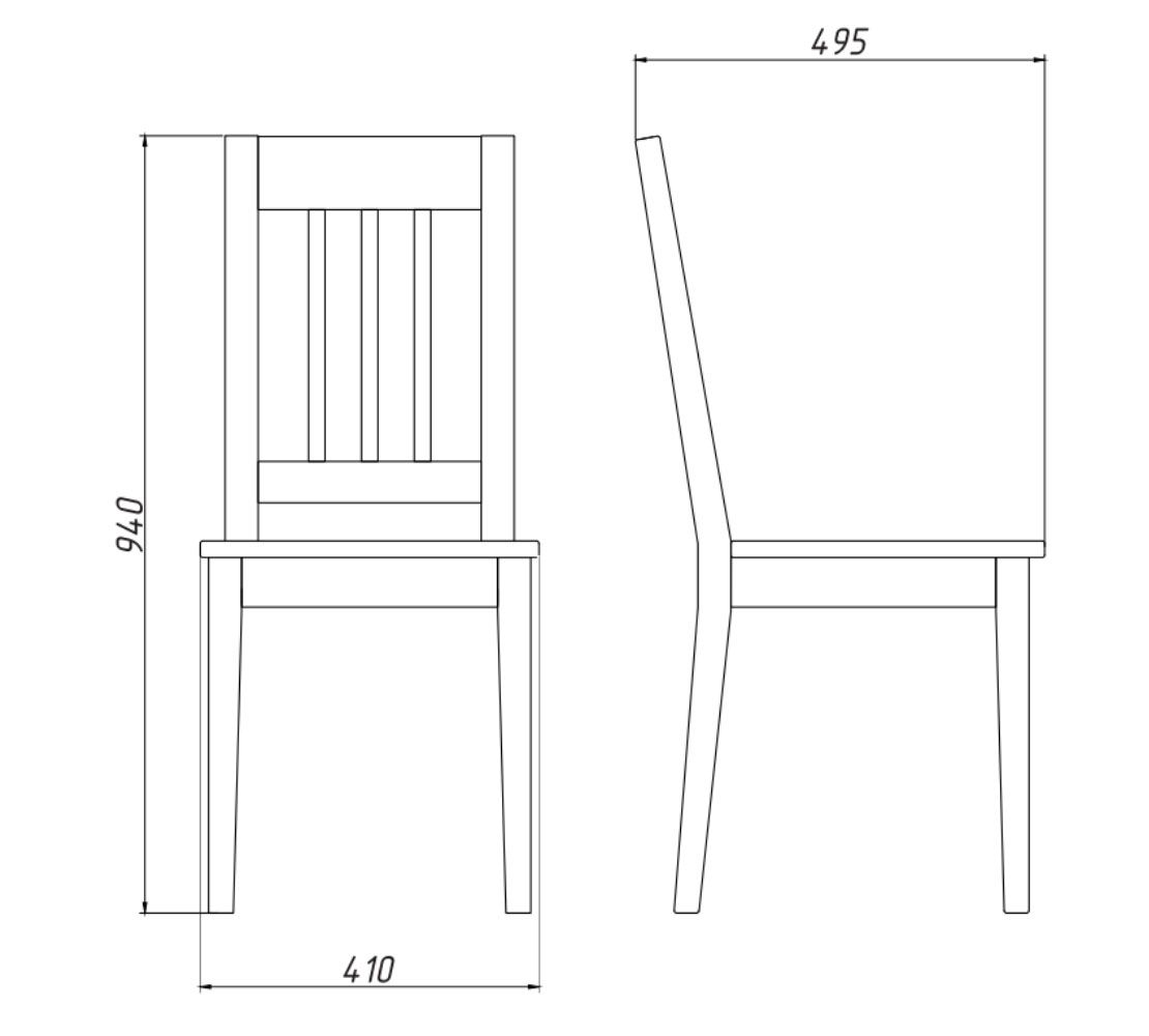 Ширина стула составляет 410 мм, глубина — 495 мм, а высота спинки — 940 мм. В комплект поставки входит один стул в разобранном виде.