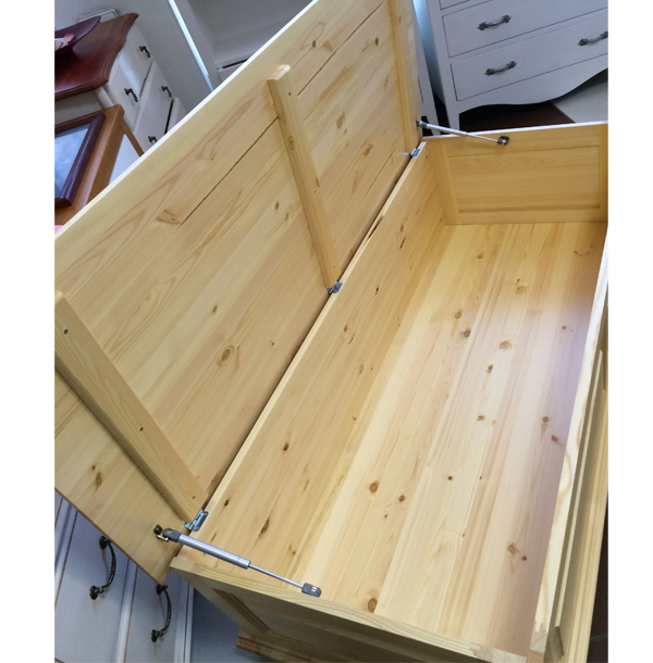 Конструкция кровати оснащена удобным механизмом, который позволяет легко поднимать нижний край основания спального места - под ним расположен просторный блок для хранения белья. Блок по площади равен спальному месту и разделен перегородками на два равных отсека. В комплект входит ортопедическое реечное основание под матрас.