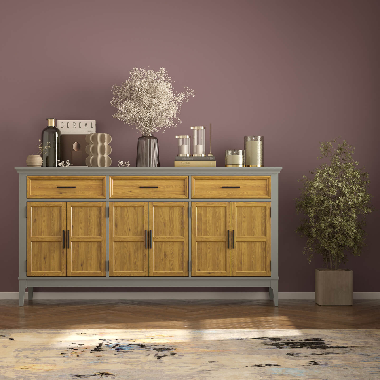 умба «Квадро-С» 063Ф широкая и удобная. Состоит из трех вместительных отделений с полками за распашными дверками, сверху три выдвижных ящика. Подойдет как для прихожей, спальни или гостиной в городской квартире, так и для загородного дома.
