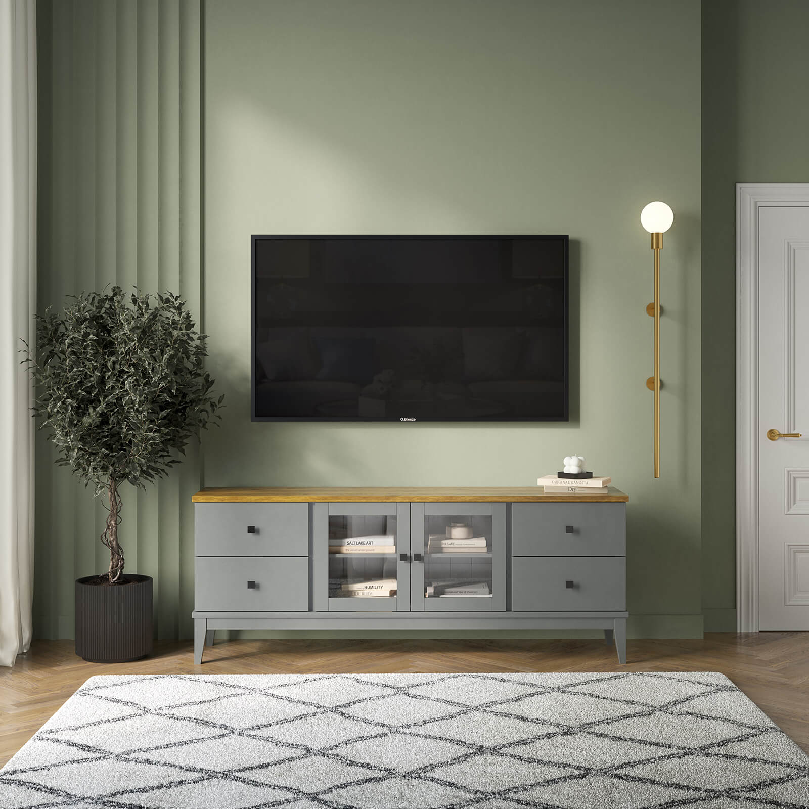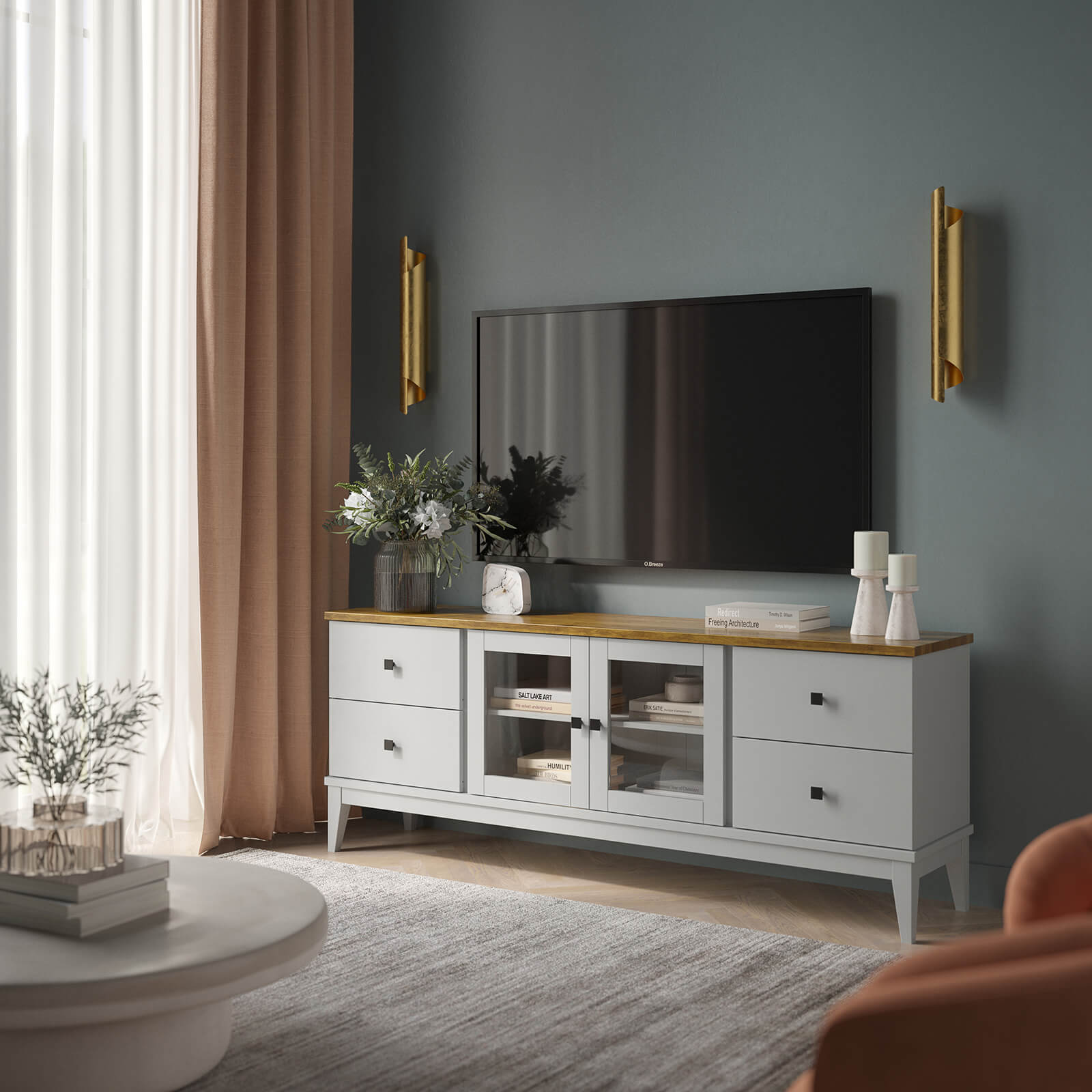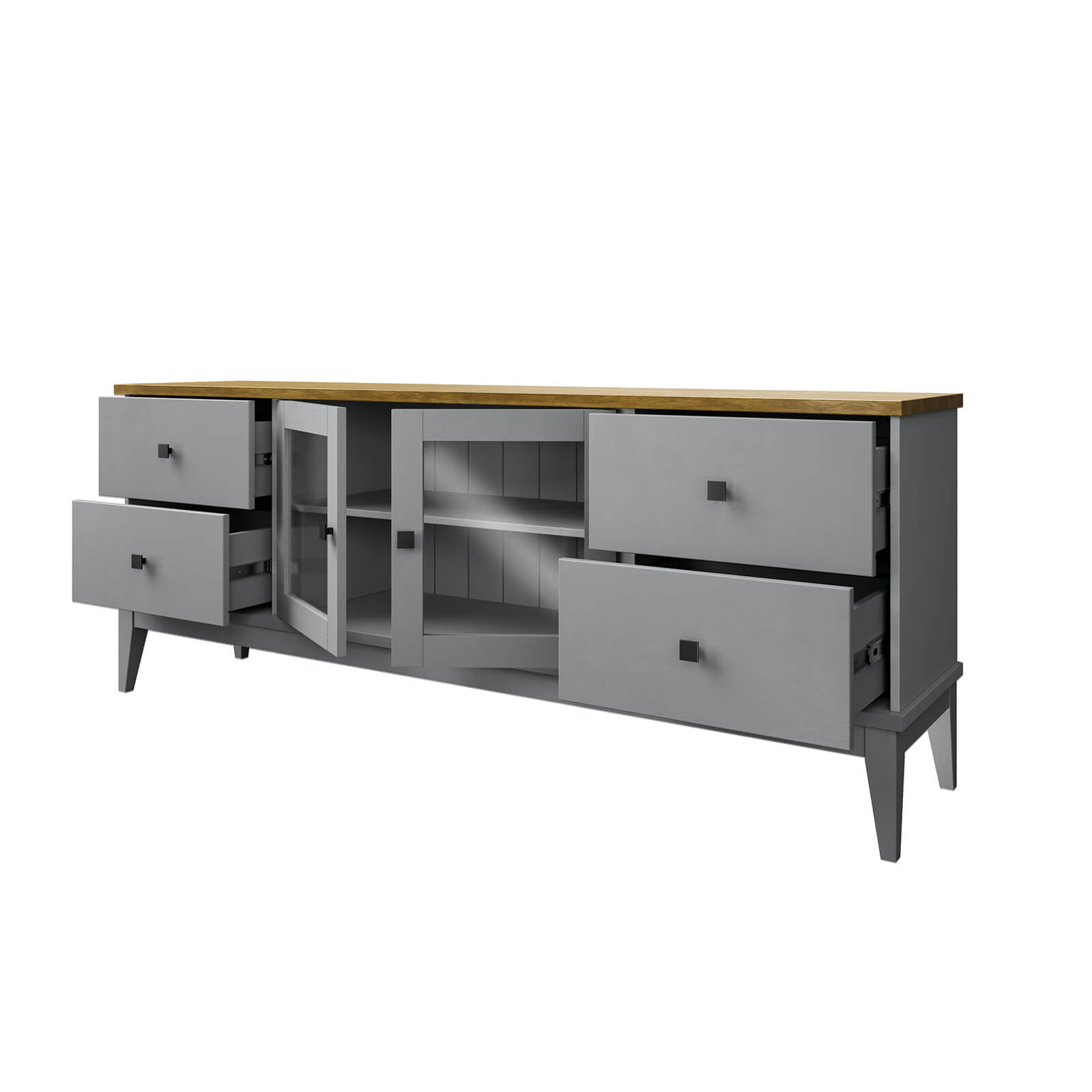 Представляем тумбу под тв 180 «Бон Вояж» 24 из массива сосны. Представляет собой высокую тумбу с четырьмя ящиками по бокам и полкой за распашными дверями. Выдвижные ящики полного выдвижения на телескопических направляющих.