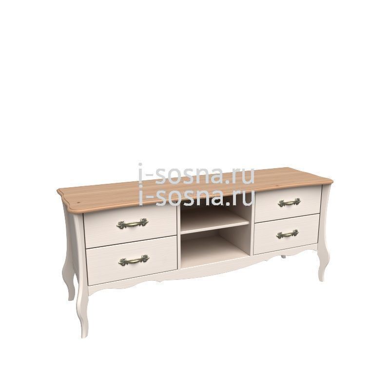 Тумба ТВ Лебо имет 4 выдвижных ящика на направляющих Blum с доводчиками и полку с средней части.