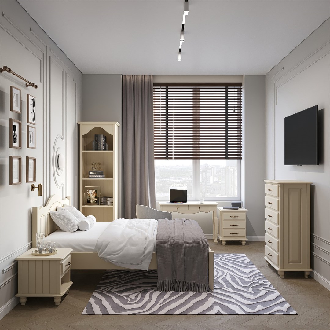 Рельефное изголовье и плавные очертания кровати Victory Plus делают ее прекрасным вариантом для уютной спальни в классическом камерном стиле. Сочетание фактур делает модель современной и небанальной: высокое изголовье обито высококачественной искусственной кожей, а корпус выполнен из ламинированных ДСП-панелей.