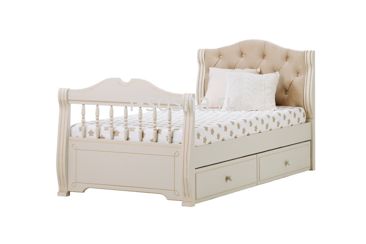 Конструкция кровати оснащена удобным механизмом, который позволяет легко поднимать нижний край основания спального места - под ним расположен просторный блок для хранения белья. Блок по площади равен спальному месту и разделен перегородками на два равных отсека. В комплект входит ортопедическое реечное основание под матрас.