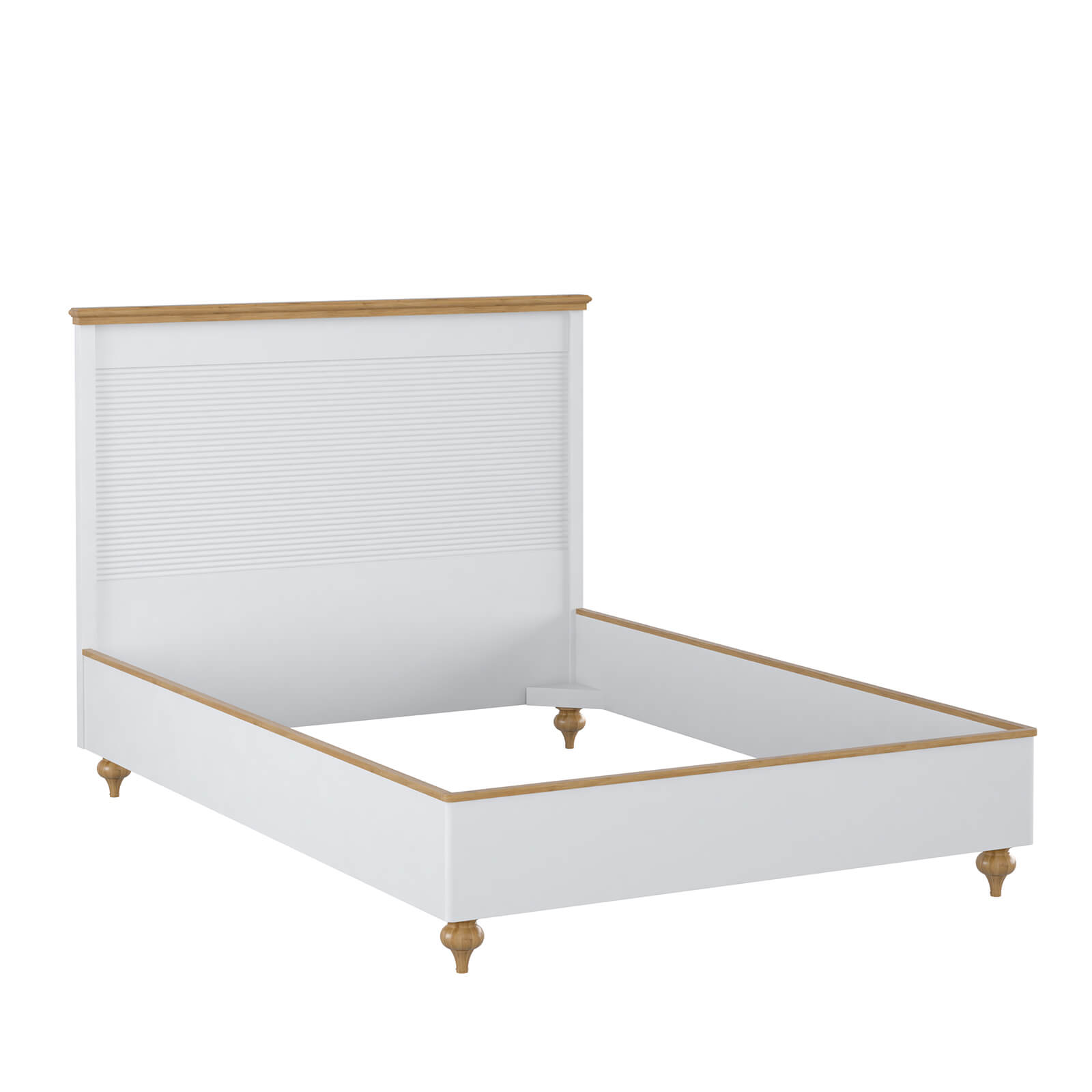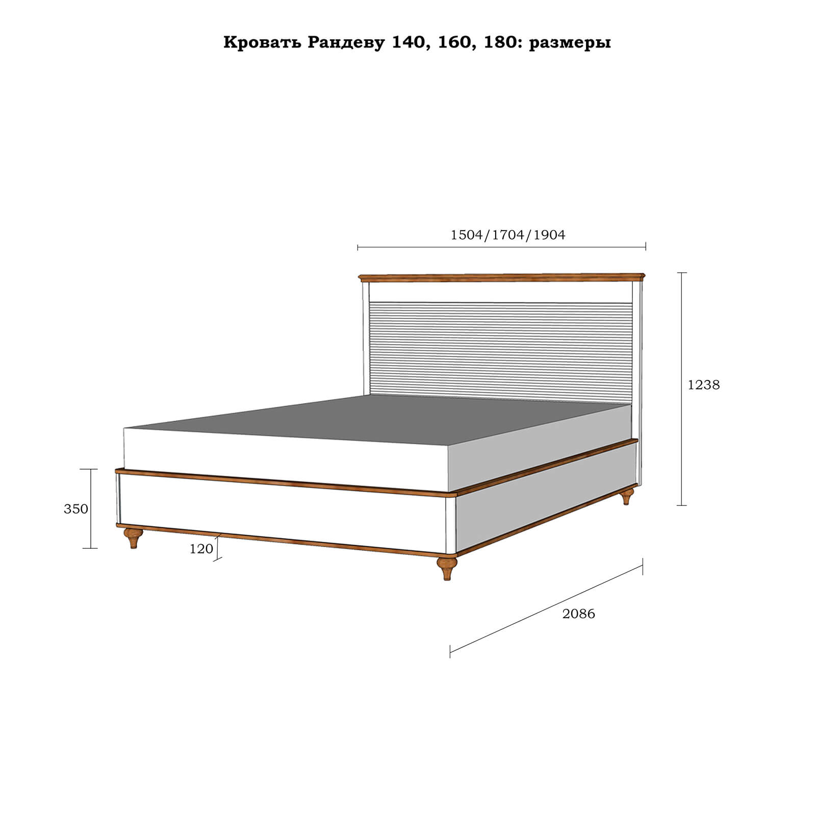 Кровать двухспальная из коллекции «Рандеву»  – это простой классический дизайн в уверенном исполнении из натурального дерева. Она оснащена красивым изголовьем, без изножья. Высокие ножки – удачное решение для быстрого доступа во время уборки. Обратите внимание, что настил или ортопедическое основание в комплект не входят.